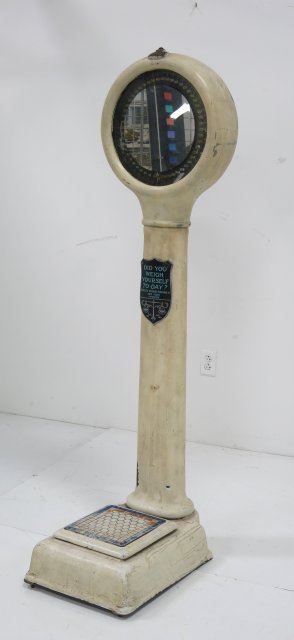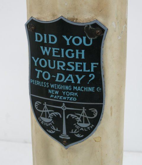 With plaque "Peerless Weighing Machine Co. New York Coin Operated". Approx. 68" H. Some paint wear.