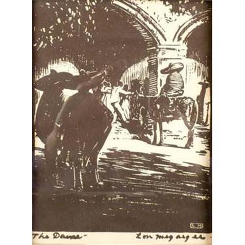 Lon Megargee (1883-1960), Woodblock, "The Dance", 8 1/2" x 6 1/2", Signed Lower right. Provenance: Iron Eyes Cody Estate.
