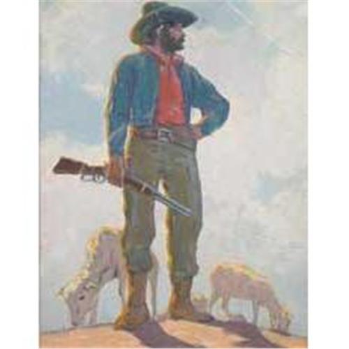 Lon Megargee (1883-1960), Gouache, Sheepherder, 7" x 5 1/2", 1 1/2" tear through head, 2" tear right top corner. Provenance: Iron Eyes Cody Estate.