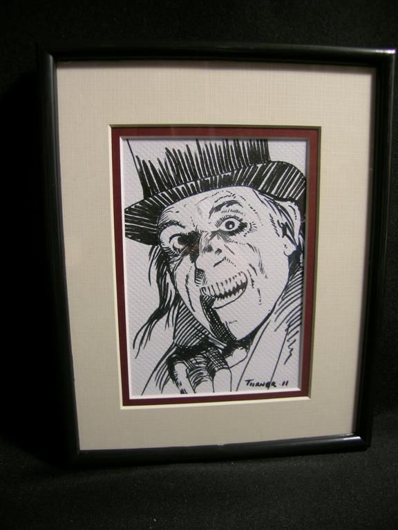 Framed mixed media image of Lon Chaney as The Man in the Beaver Hat in London After Midnight, measuring 11 x 9 x 1. This portrait was done by veteran film and television makeup effects artist Doug Turner using both computer and painting techniques.