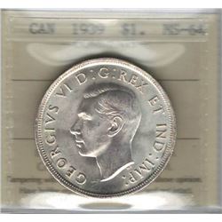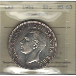 Canada 1937 Silver Dollar ICCS SP64 Matte