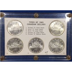 Canada 1965 Silver Dollar Type Set. Plastic Holder. UNC coins. Scuffed Holder.