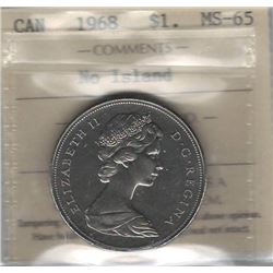 Canada 1968 Nickel Dollar ICCS MS65 No Island