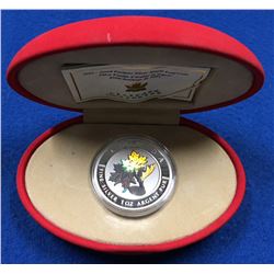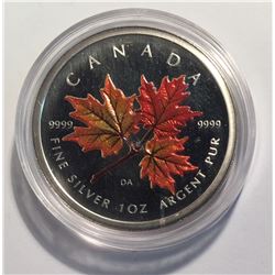 Canada 2001 $5 Orange Coloured Silver Maple Leaf Autumn - Capsule Only