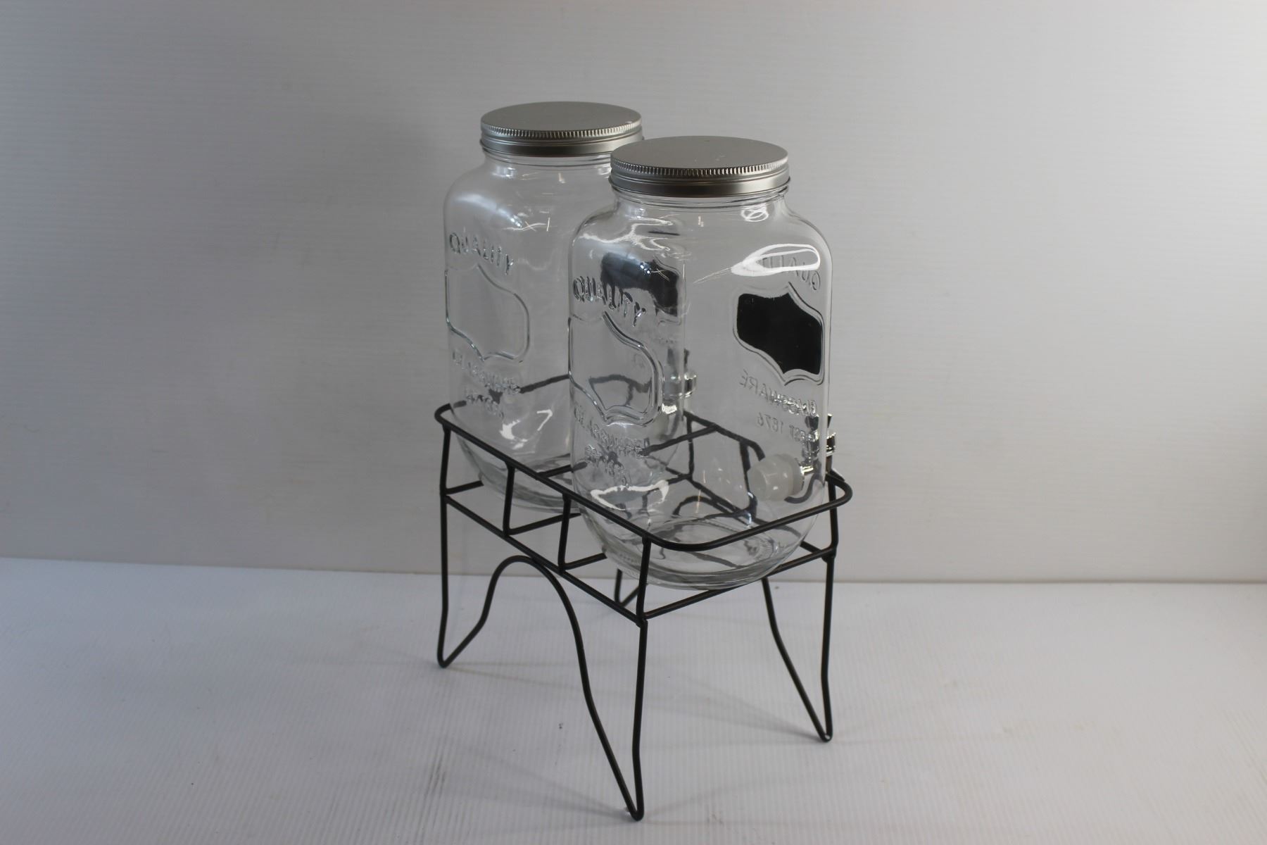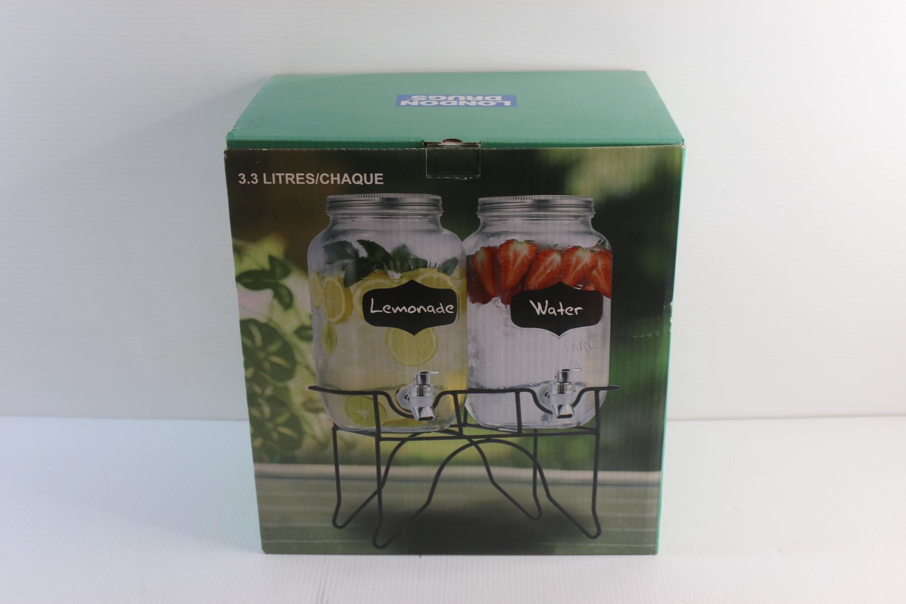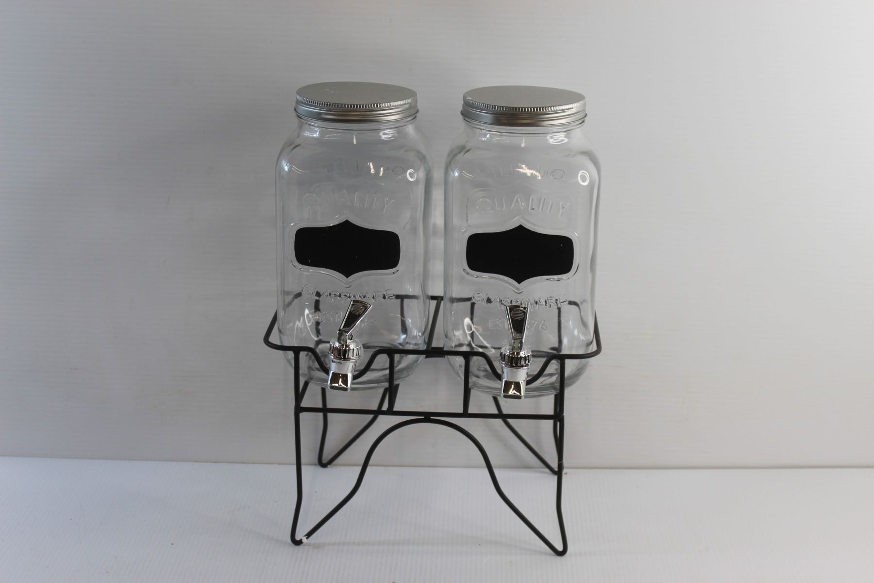London Drugs Beverage Dispenser with Blackboard Set of 2 and Metal Stand