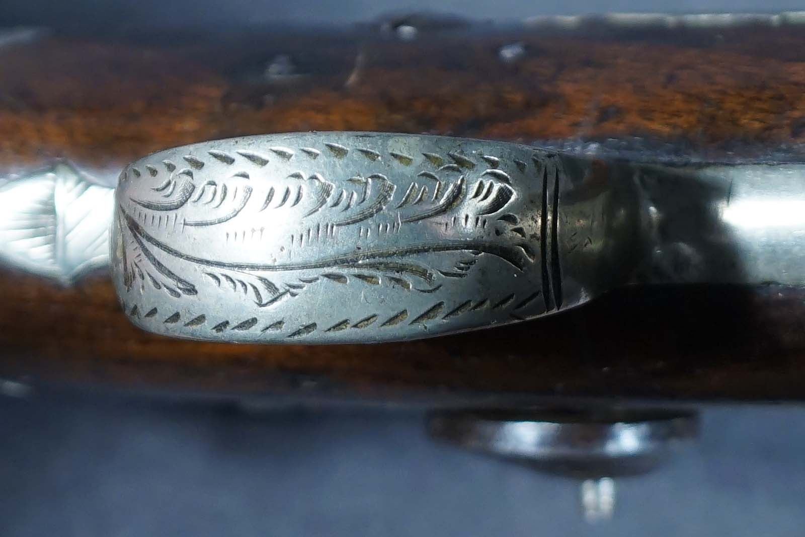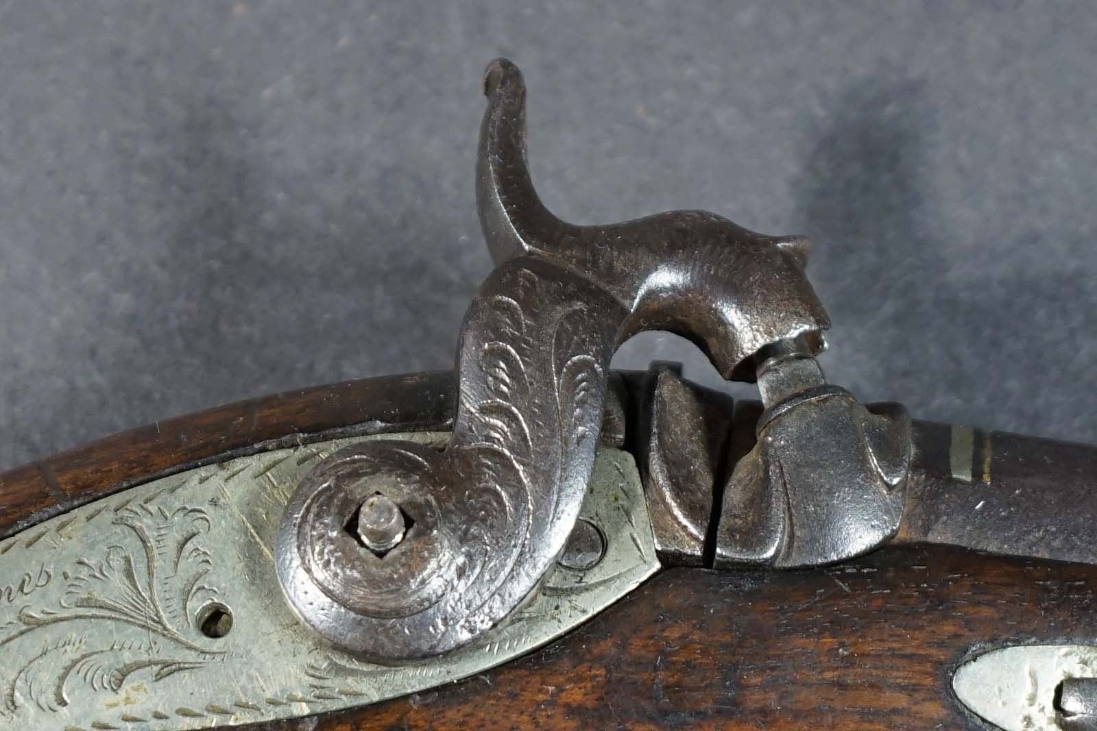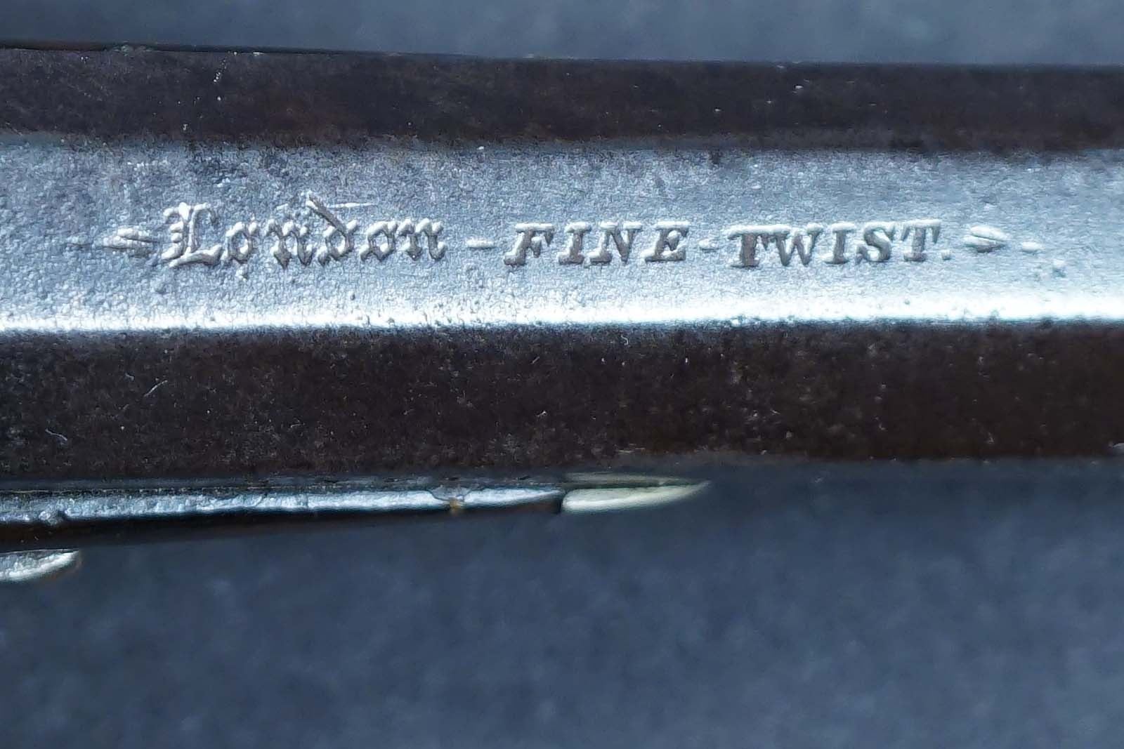 Numbered on the side of the barrel : *1418 . An attractive piece. The phrase "London Fine Twist" refers to the barriel being made of Damascus steel, and is not an indication of origin. English or continenental pistols would have proof marks, the lack of whick would indicate a North American origin.