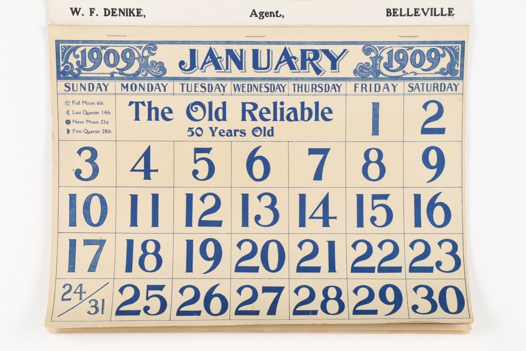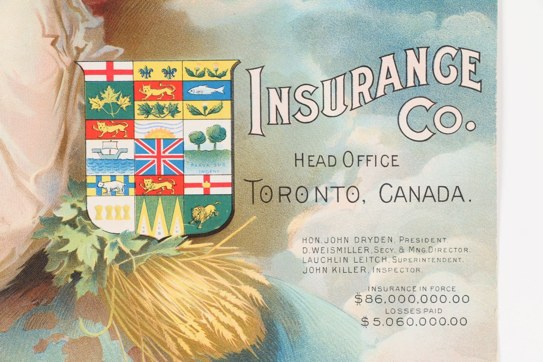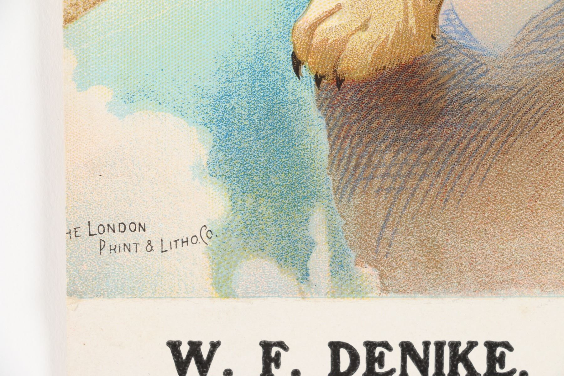 Toronto, Canada. “W.F. Denike, Agent, Belleville”. Signed lower left, “The London Print and Litho Co”. 29.75” x 17.25”. Full book. Professionally replaced backing. $300-400.