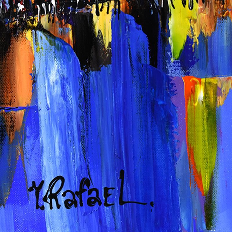 London at Night by Rafael Original. Please see photos and description for all available information. "London at Night" is an original acrylic painting on stretched canvas by Yana Rafael, hand signed by the artist. Includes Letter of Authenticity. Measures approx. 36" x 24" (image).