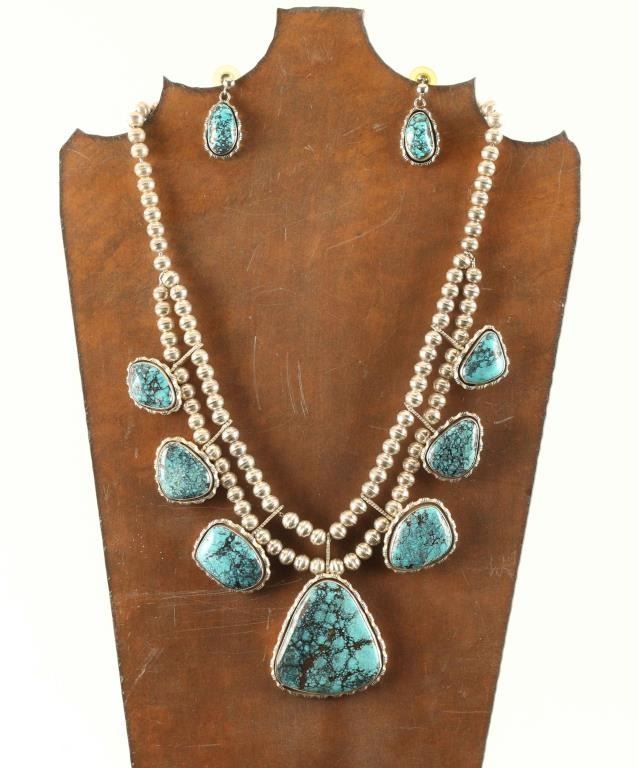 Necklace and matching dangle earrings, 7 stones, with sterling beads, made by William J Johnson.