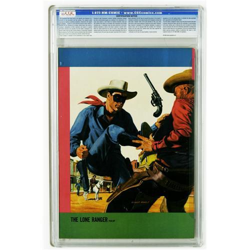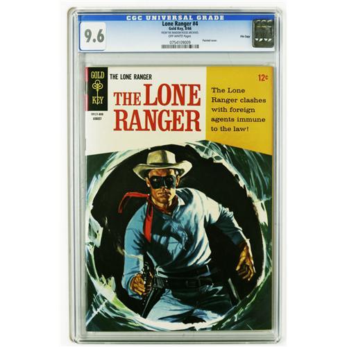 <B>Lone Ranger File Copies CGC Group (Gold Key, 1965-69).</B></I> All comics in this group have been certified with "off-white to white" pages unless otherwise noted. Included here are #2 (CGC 9.6 off-white pages; CGC census 4/06: 1 in 9.6, 1 higher), #4 (CGC 9.6 off-white pages; 7 in 9.6, none higher), #8 (CGC 9.6; 2 in 9.6, none higher), #9 (CGC 9.6; 1 in 9.6, none higher); #10 (CGC 9.4; 1 in 9.4, none higher), #11 (CGC 9.4, 1 in 9.4, none higher), #12 (CGC 9.4, 1 in 9.4, none higher), #13 (CGC 9.6, 2 in 9.6, none higher), #14 (CGC 9.4 White pages; CGC 9.4, 1 in 9.4, none higher), #15 (CGC 9.4; 1 in 9.4, none higher), and #16 (CGC 9.4; 1 in 9.4, none higher). Overstreet 2006 NM- 9.2 value for group = $350. <I>From the Random House Archives.</B></I>
