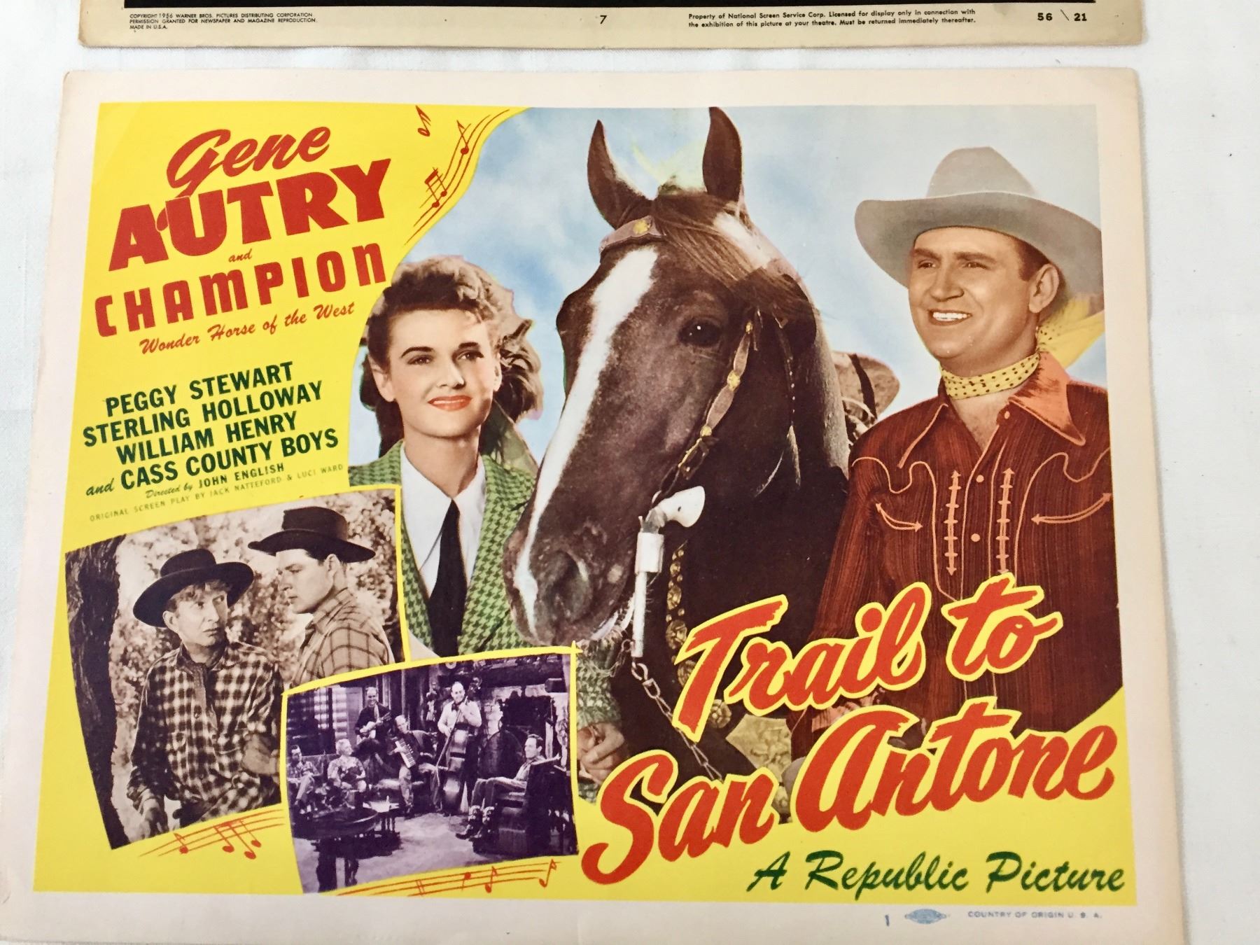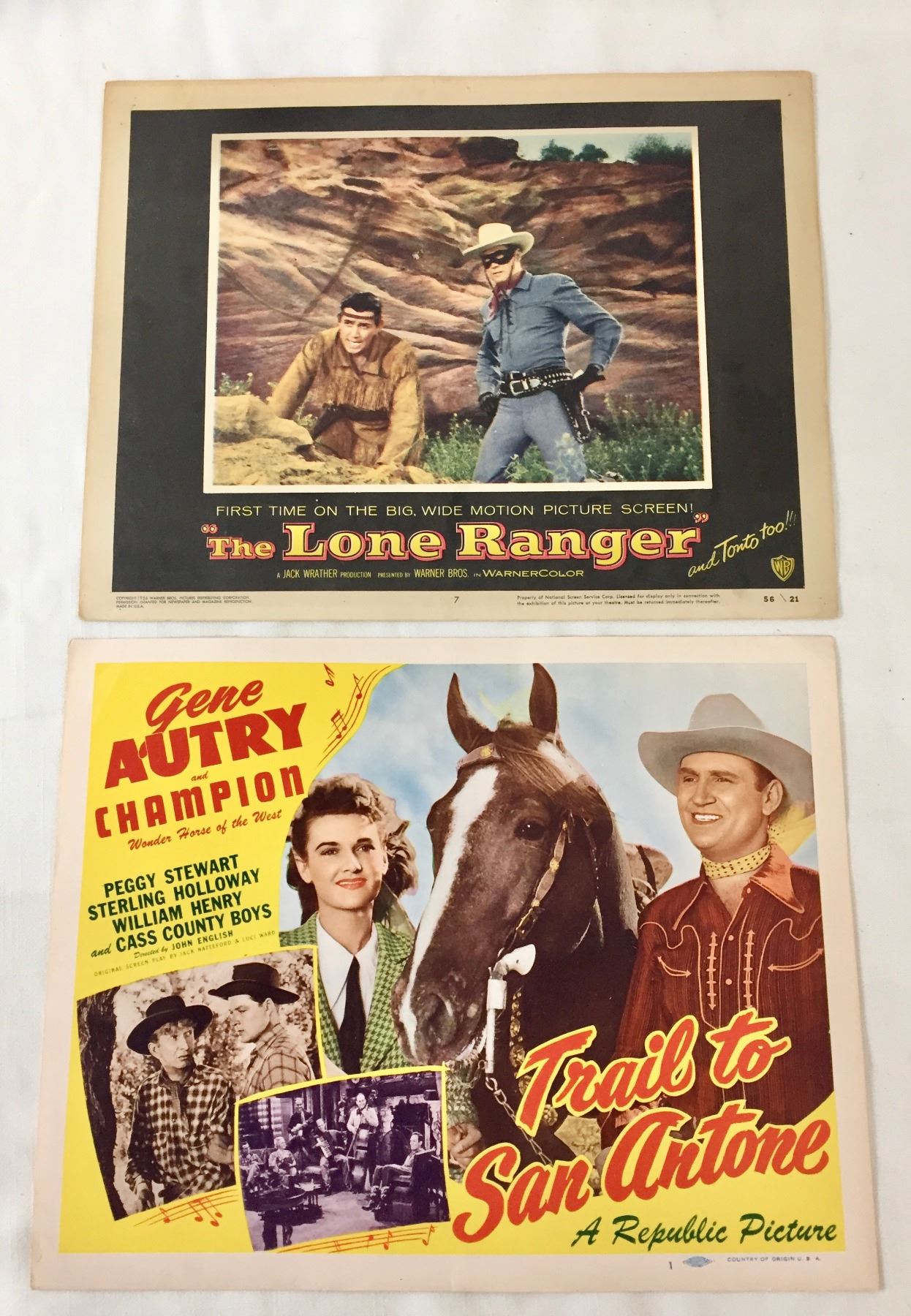 Description: Offered for sale in this lot are two Lobby Cards. One features Gene Autry in the movie "Trails to San Antone". The other features "The Lone Ranger". Maker: Republic Pictures.