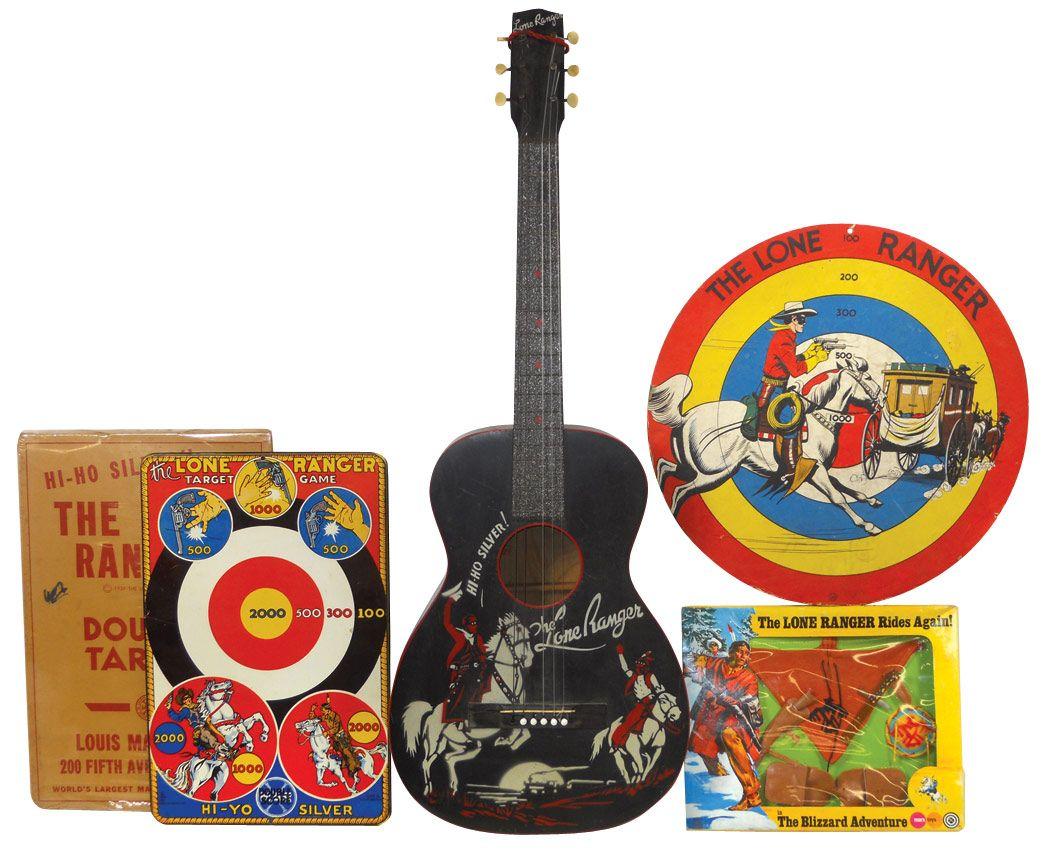 Lone Ranger items, includes Lone Ranger guitar (one broken string), Marx The Blizzard Adventure, Lon
