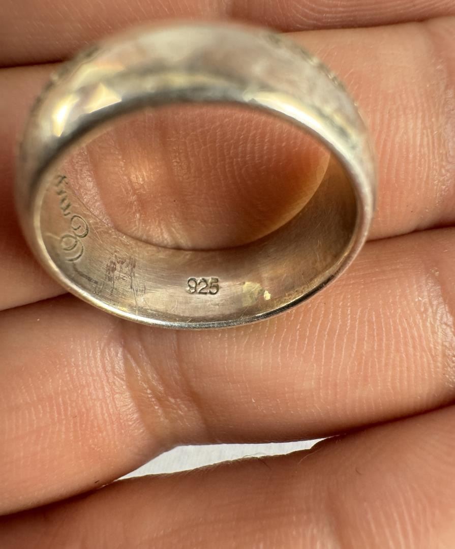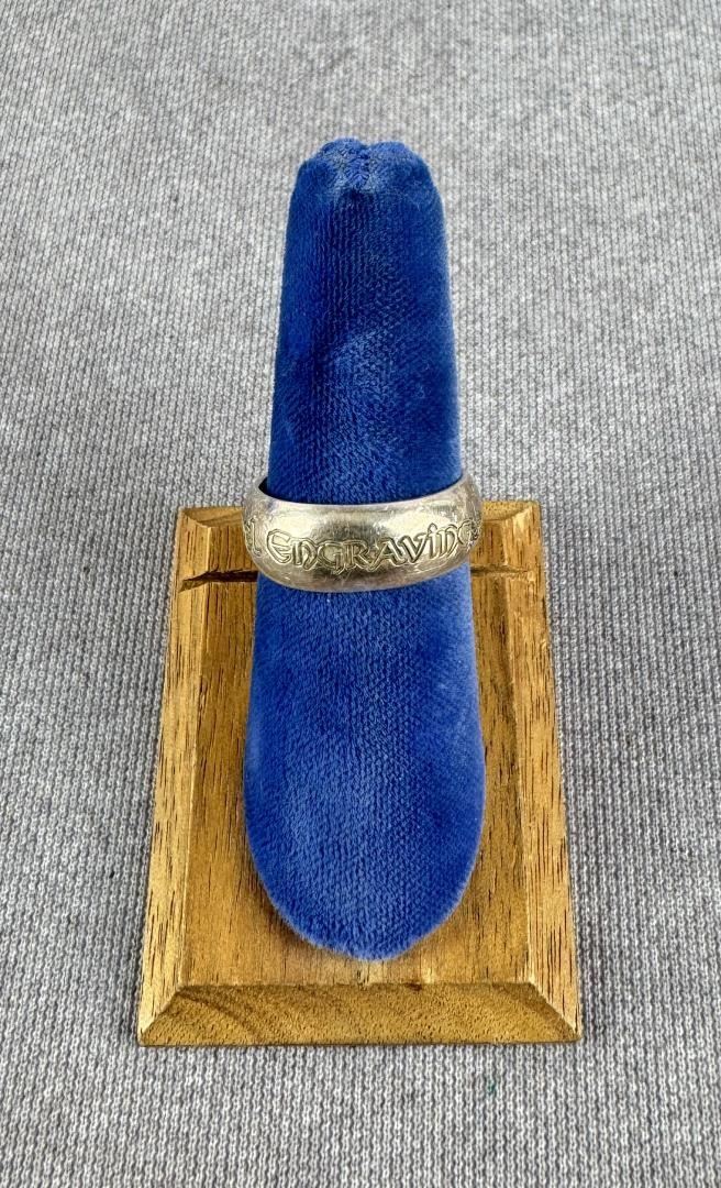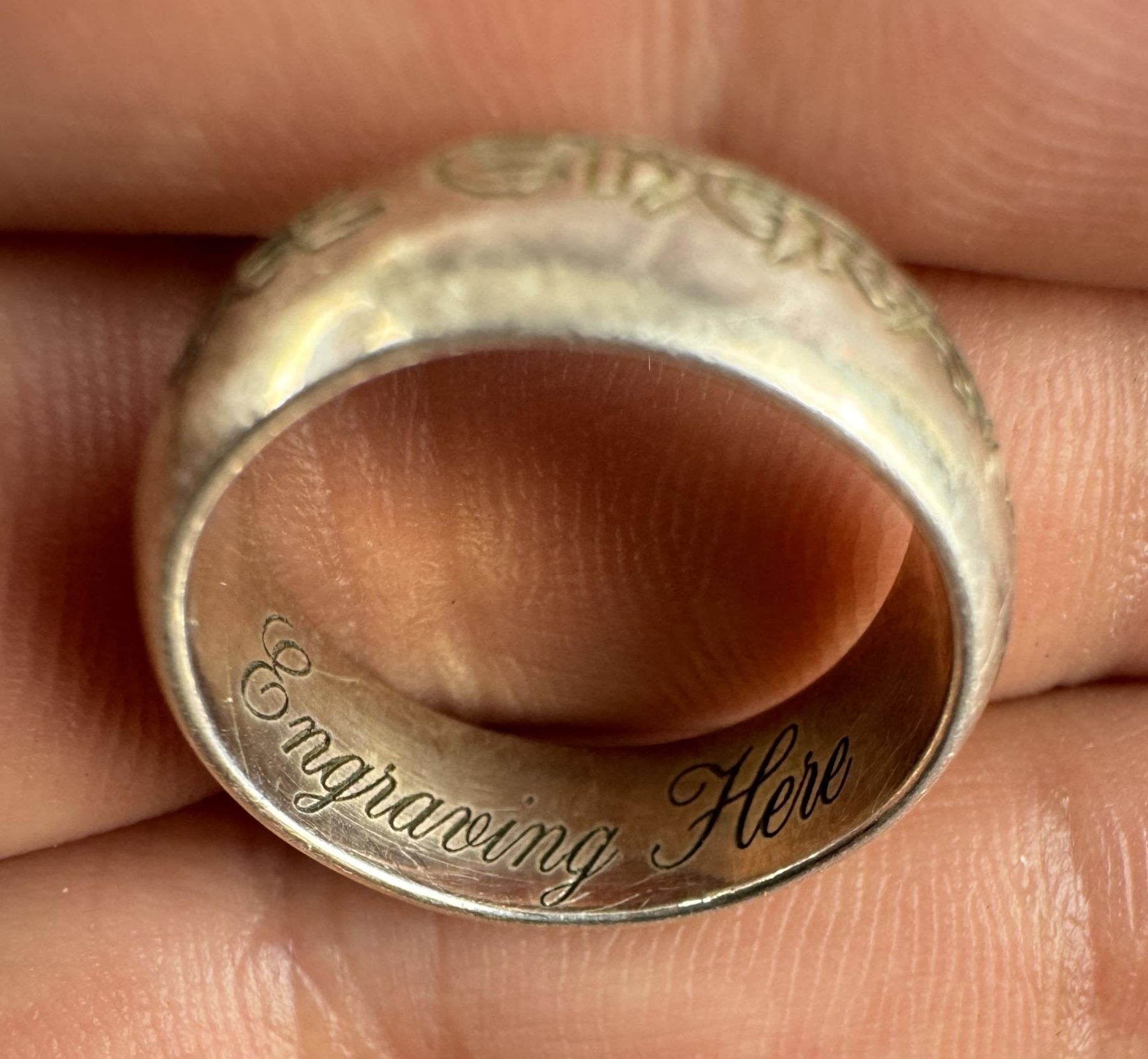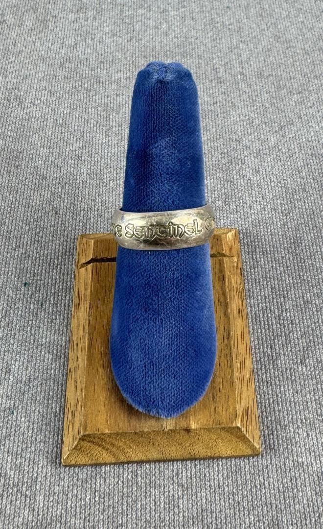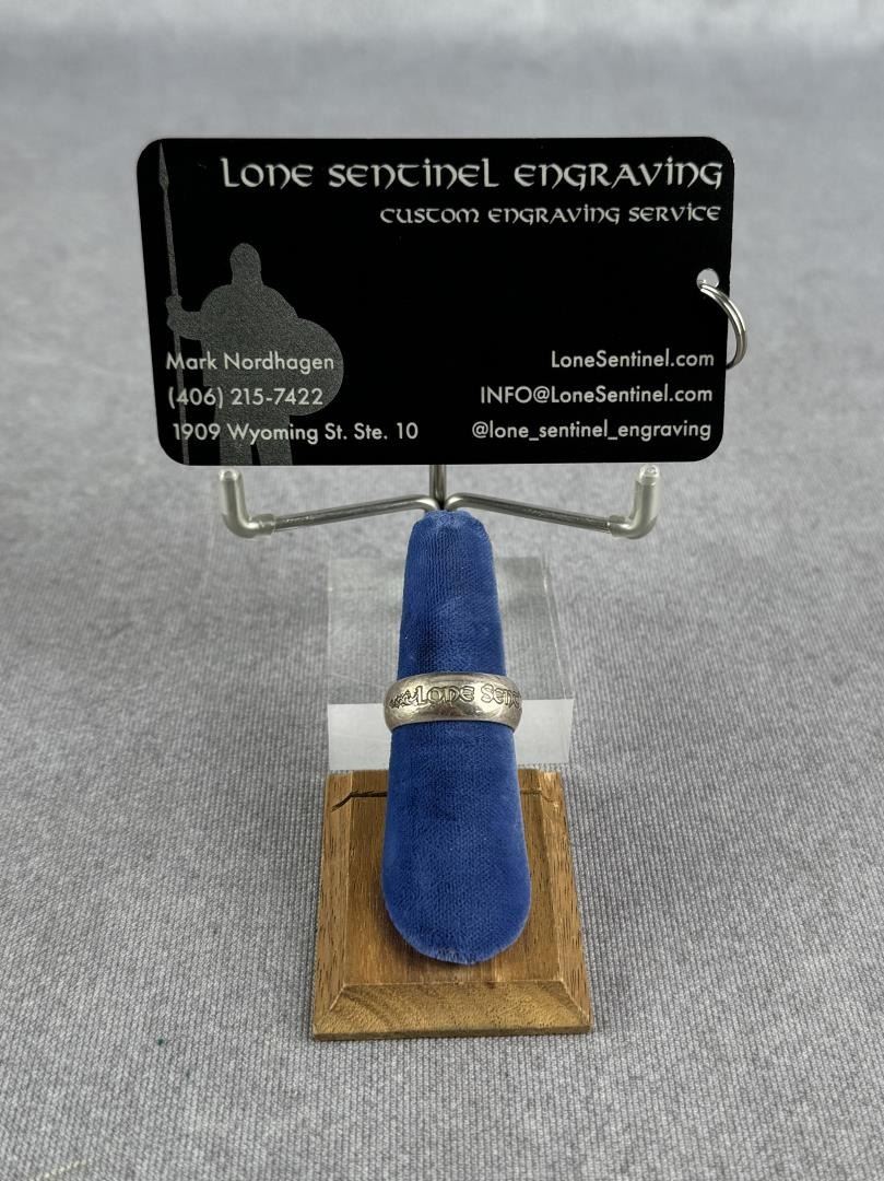 Montana engraver business card with sample sterling silver ring. Made in Montana. Size 7.