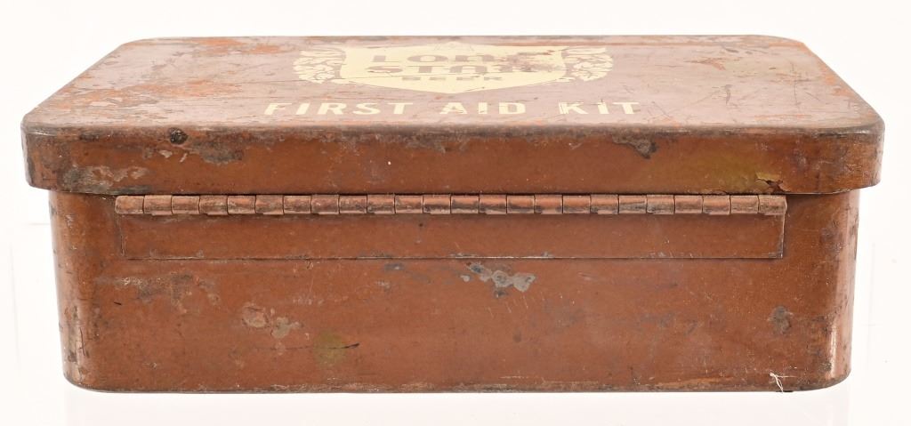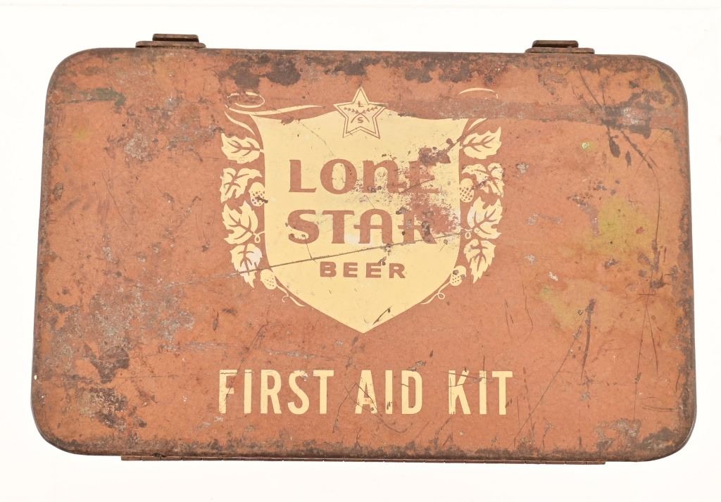 Metal First Aid kit box from the Lone Star Brewery, San Antonio, Texas. 2.5" x 5" x 8"