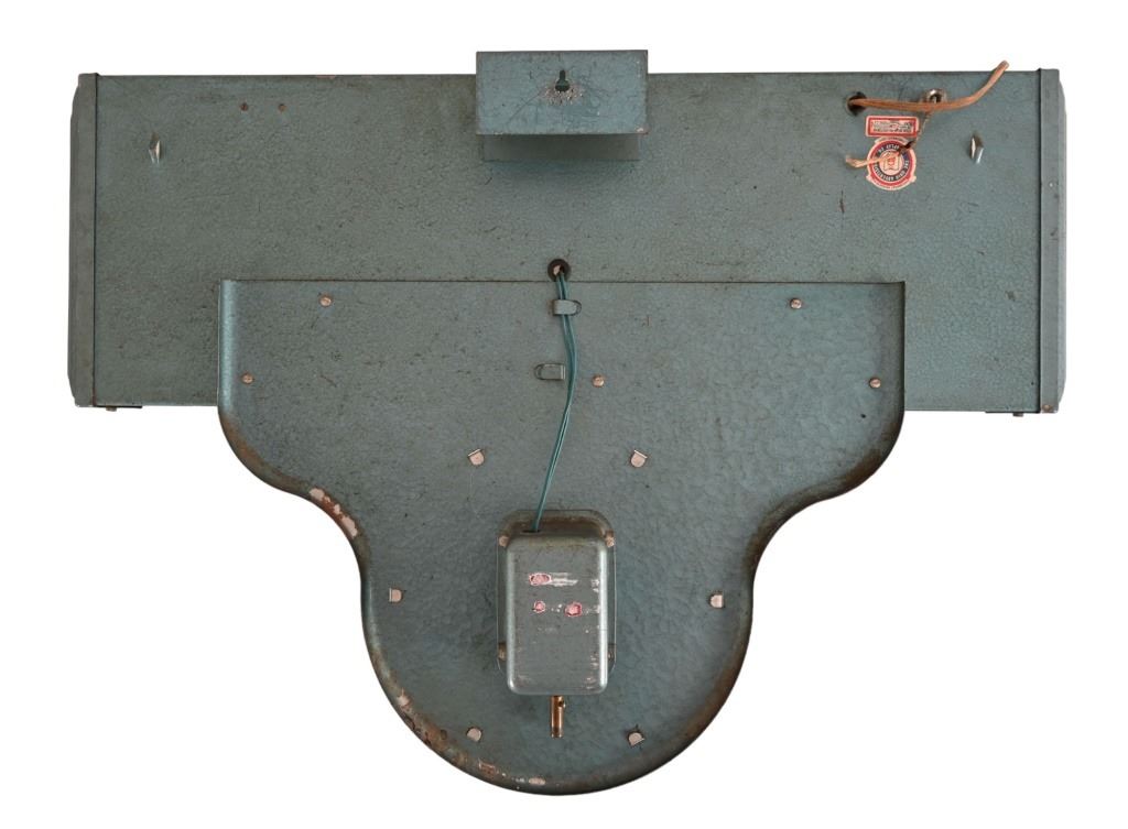 In working original condition, plastic fascia does have crack through, hardly noticeable at distance when lit. Measures 5.5" x 18" x 27"