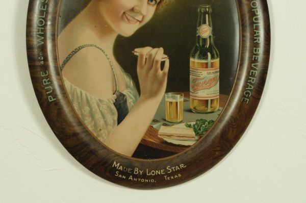 "Made by Lone Star San Antonio, Texas" "The Popular Beverage Pure & Wholesale" self framed advertising sign Pre-Prohibition. " 15¢ Slice" marked on back of sign. Measures 14" wide x 17 1/2" tall.