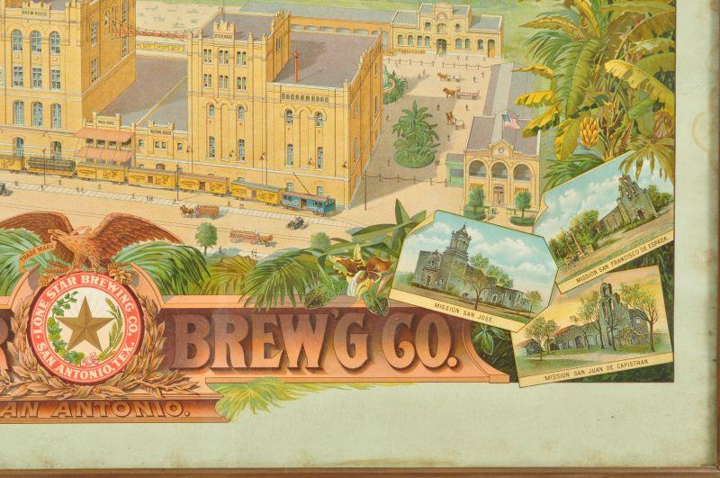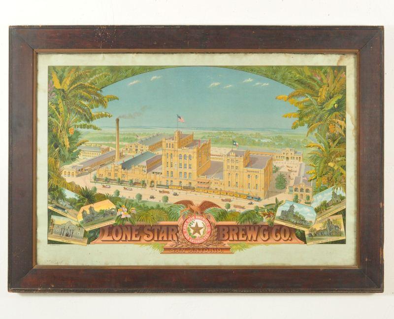 Lone Star Brewing Co. Advertisement Sign San Antonio. Bright Vibrant Colors, Original Frame, Some Water Staining On Top Right. Measures 34" x 38"