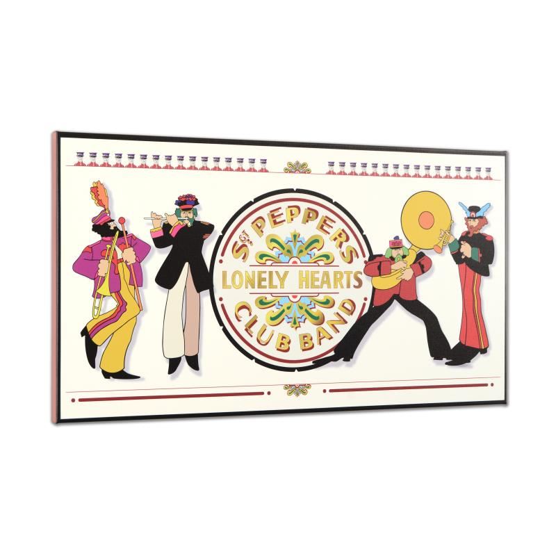 "Lonely Hearts Club Band" is a limited edition giclee on gallery wrapped canvas featuring licensed animation from the 1968 Beatles film, "Yellow Submarine". Includes Certificate of Authenticity. Measures approx. 36" x 19" (image). Please allow 5 additional business for items that include canvas stretch or framing.