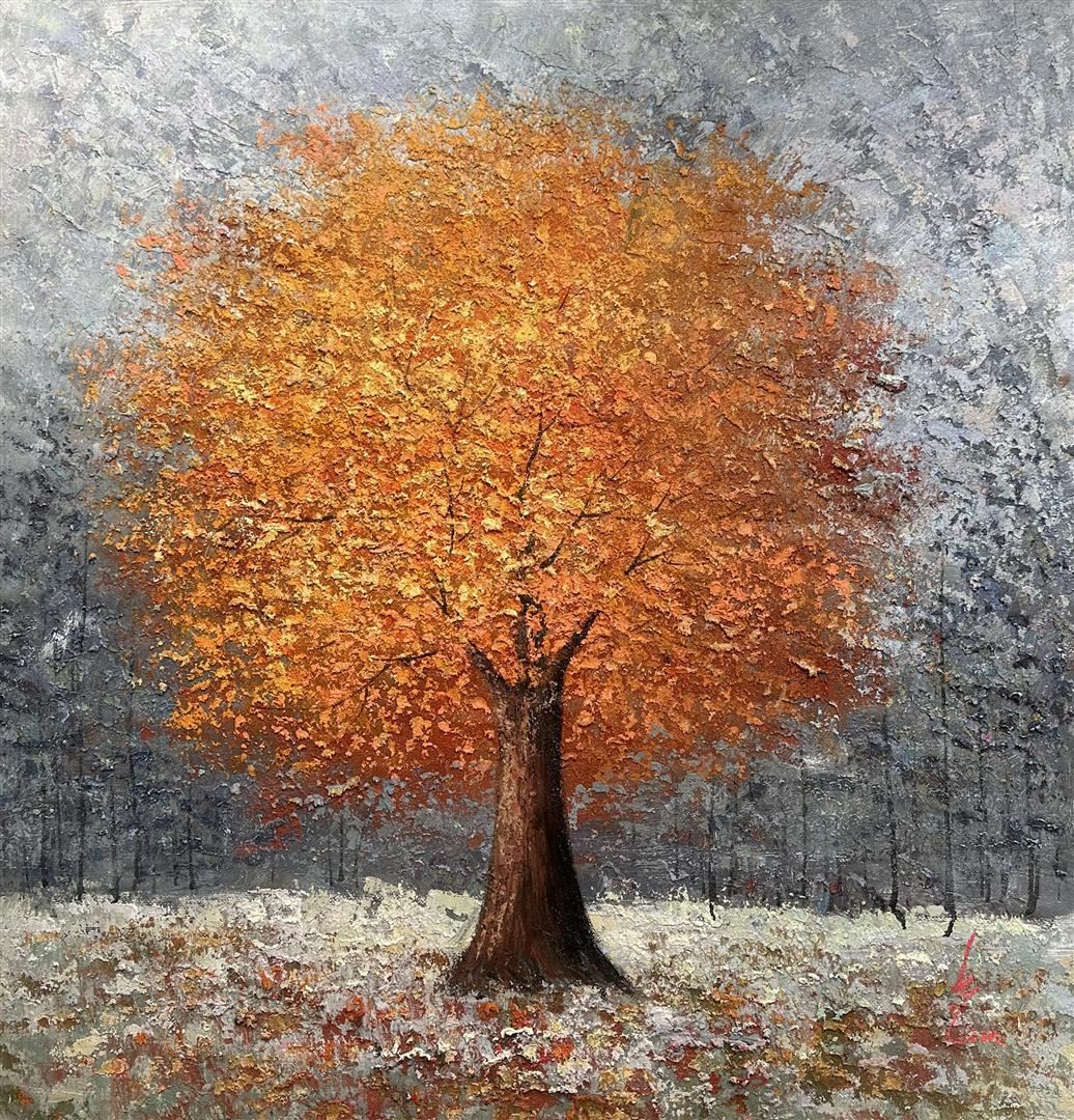 A stunning landscape in the classic impressionist style, with heavy impasto, by world renowned artist Inam. 44"x44" original on canvas, with COA
