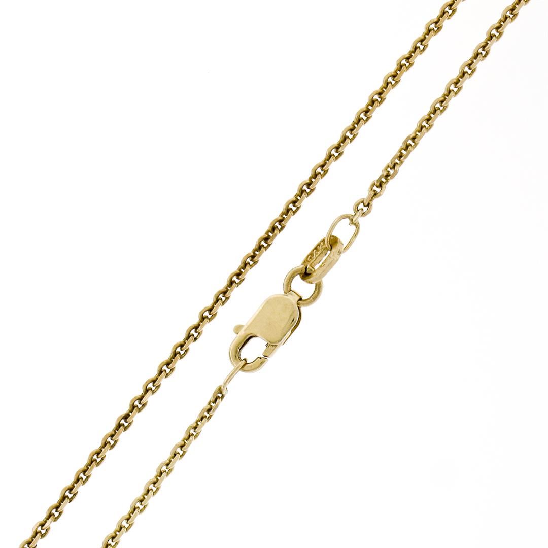 An estate solid 14k yellow gold long journey pendant necklace, with 9 brilliant cut natural diamonds (G- VS1; 0.65ctw). The pendant weighs a total of 5.03 grams, measures 36.40x5.75mm including the bail, and 18 inch cable link chain.