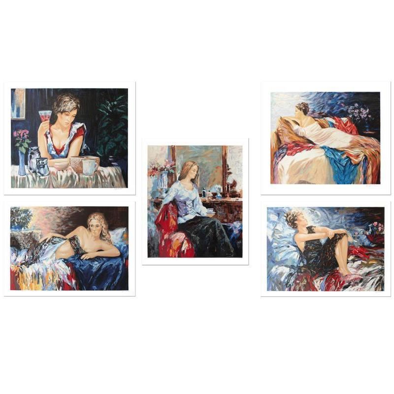 "Long Day, Thinking of you, Relaxation, Sleeping Beauty, Mary" is a 5 piece set of limited edition Serigraph on Paper by Sergey Ignatenko. The pieces are individually numbered and hand siged by the artist and come with a letter of authenticity. Measures approximately 0" x 0" (each).