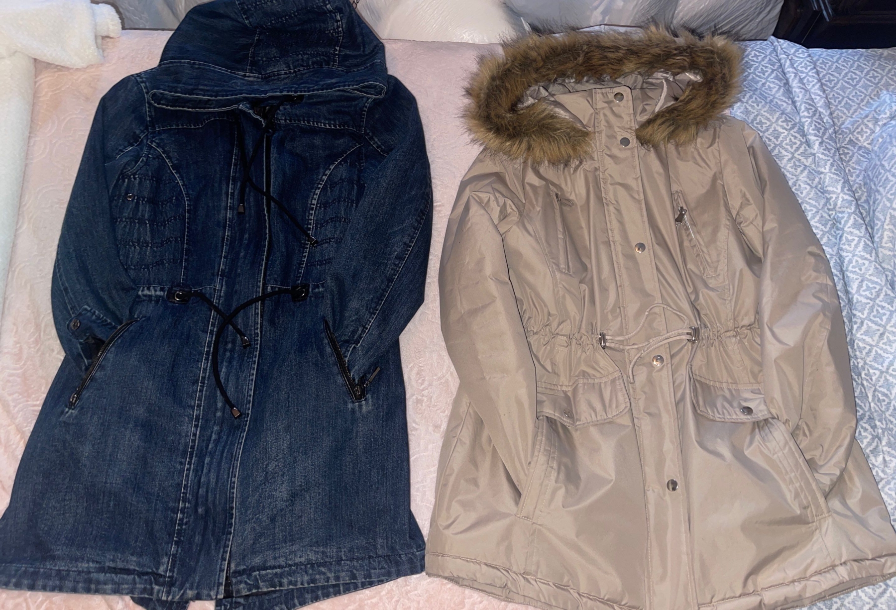 Long Denim 3/4 Legnth Jacket w/ Winter Outerwear Size M