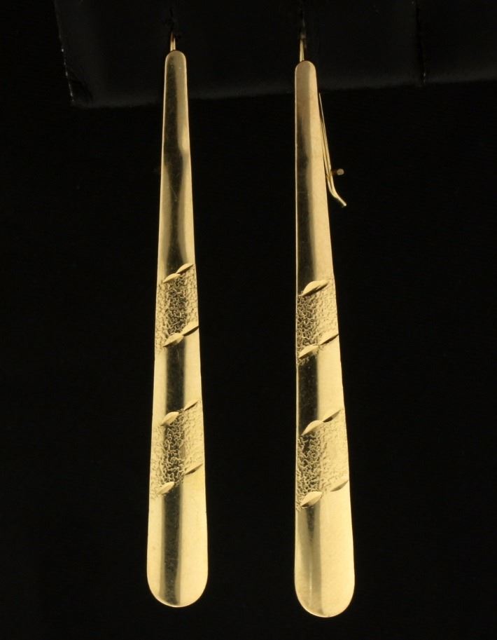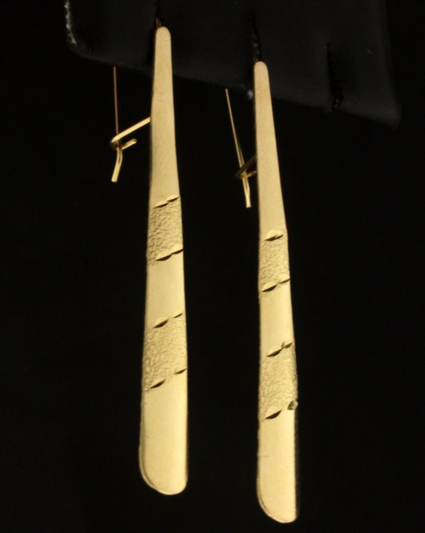 In 14k yellow gold. Just over 2 inches long. 1.4g.