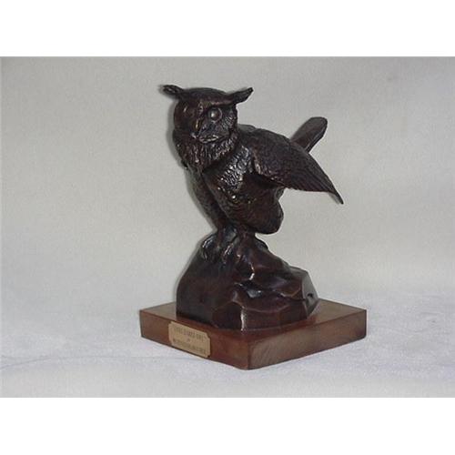 Bronze sculpture titled ''Long Eared Owl'' by Milton Evan Brasher. 10'' tall by 5'' wide sitting on a 6'' square walnut base. ''Copyright 1978 Joseph Neulinger H.C.'' Condition is excellent.