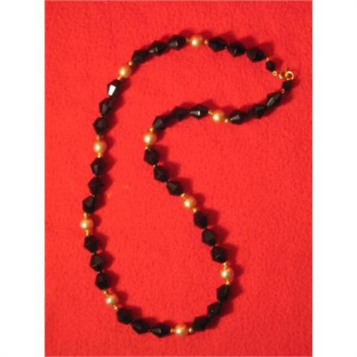 <tr><td>Title:Long Jet Glass Bi-Cone Bead Necklace</td></tr>