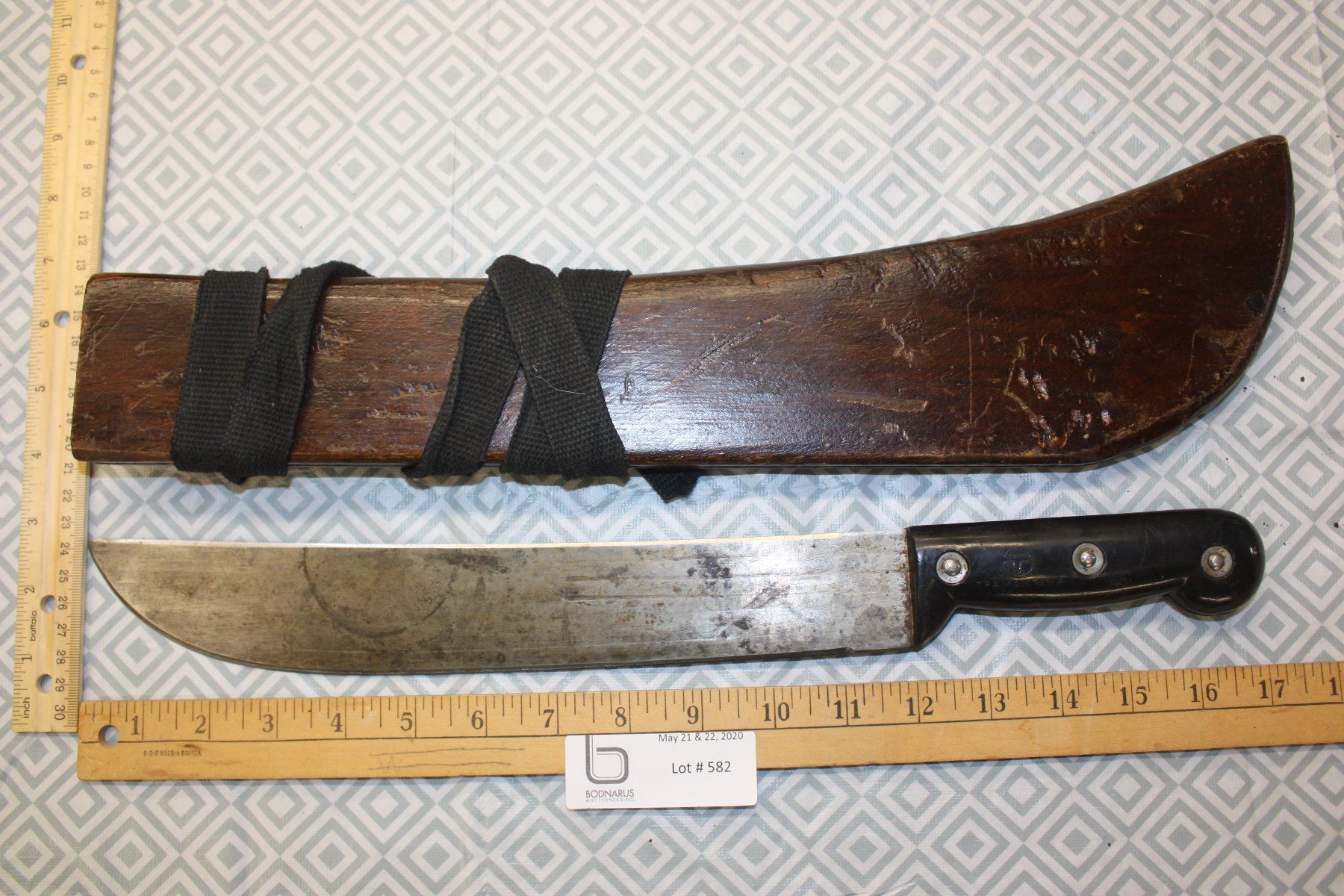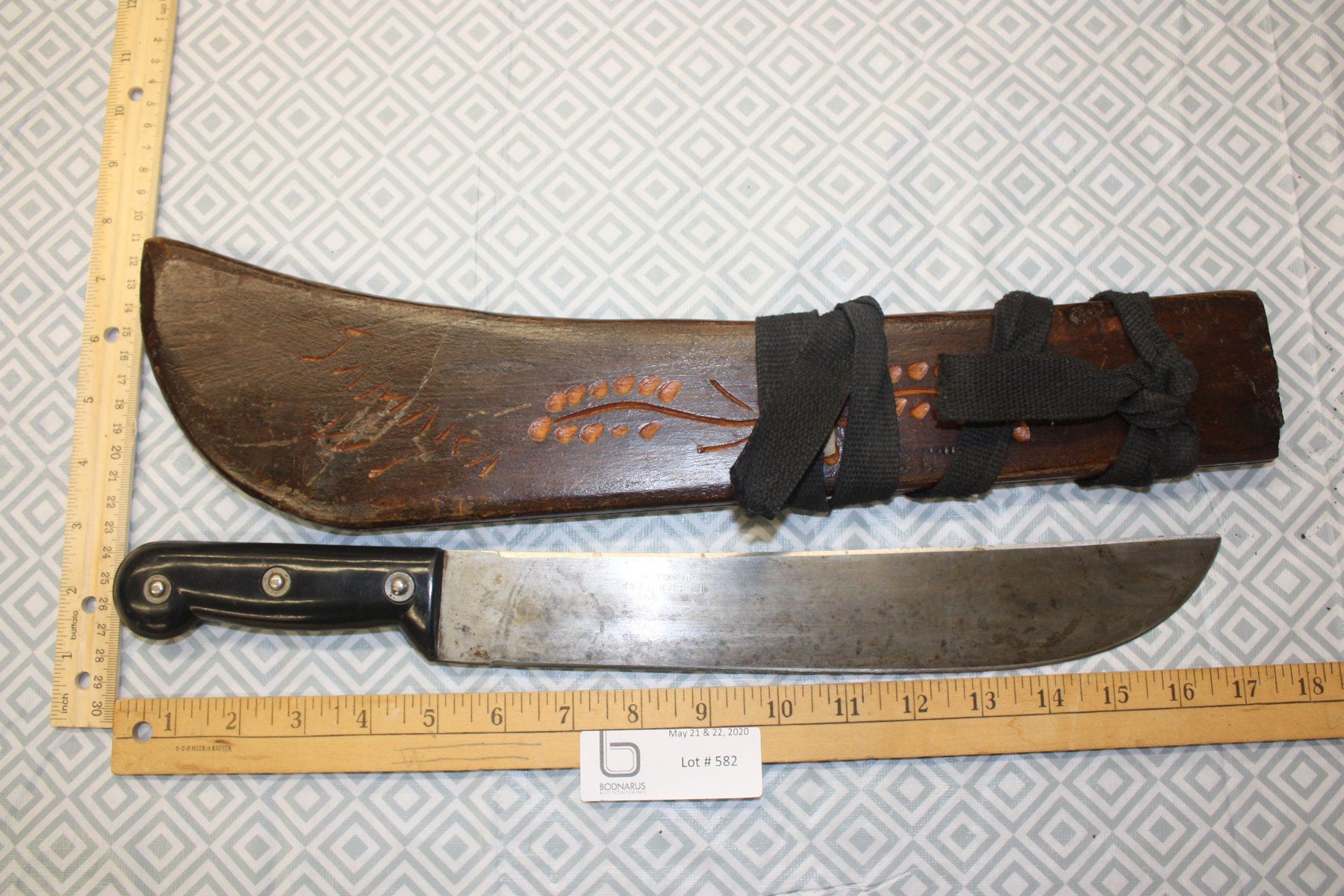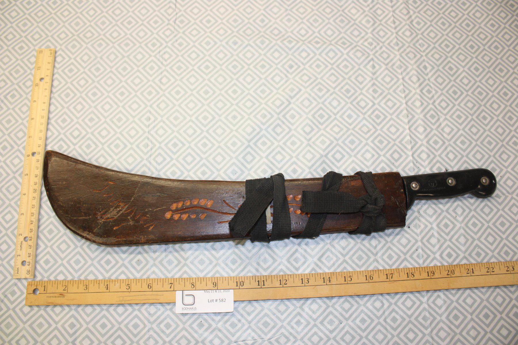 Long Knife Blade of 12 by 1/8 Thick with Wooden Sheath
