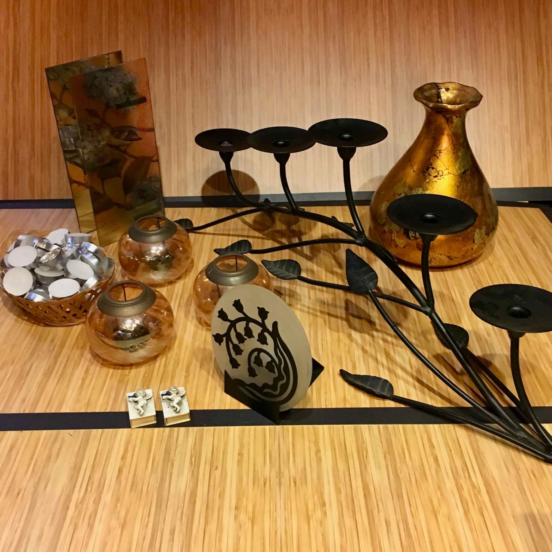 Long Metal Candle Holder, Yellow Pear Vase-10.5 inches H and more