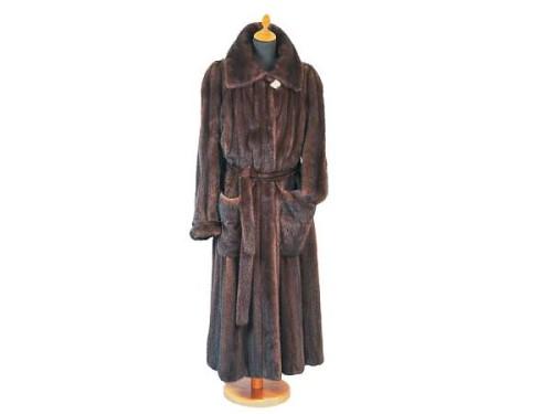 Brown, let-out sporty mink coat, with outside pockets and belt. Size: 42 (German size)
