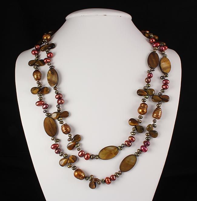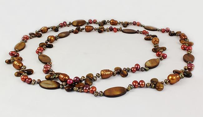 Long Single Handknotted Shell MOP and Pearl Necklace **|**|** 572.00CARAT Long Single Brown Gold Flat Shell MOP w/ Freshwater Pearl Beads Necklace Knotted ; MSRP: $0