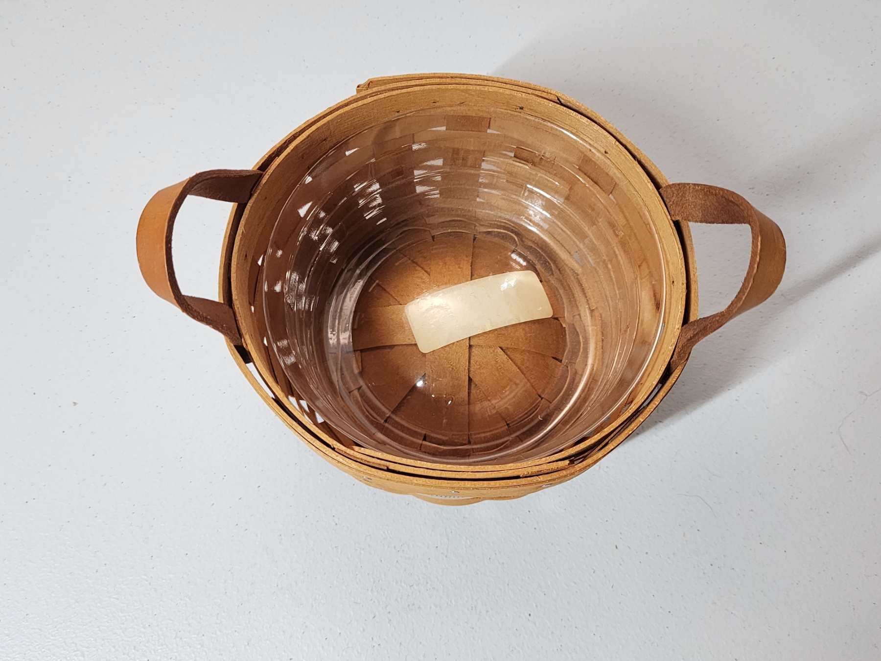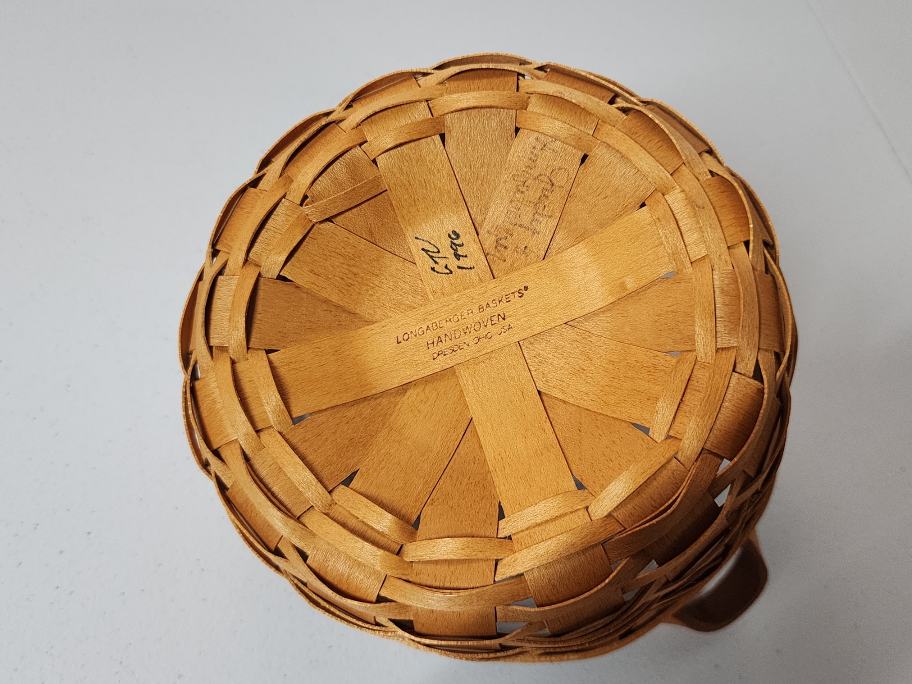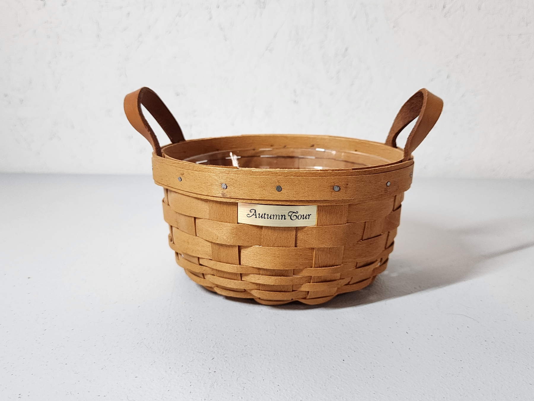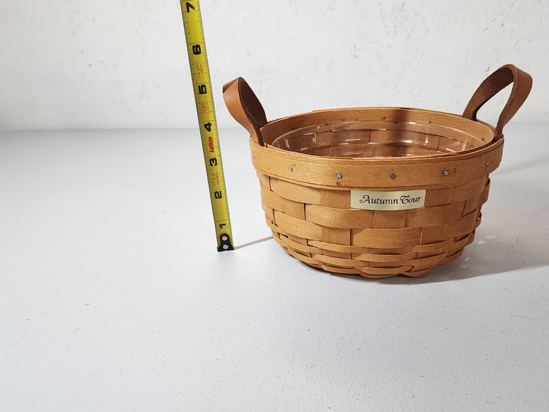 Longaberger "Autumn Tour" Round Button Basket with Leather Handles and Liner - Excellent Condition