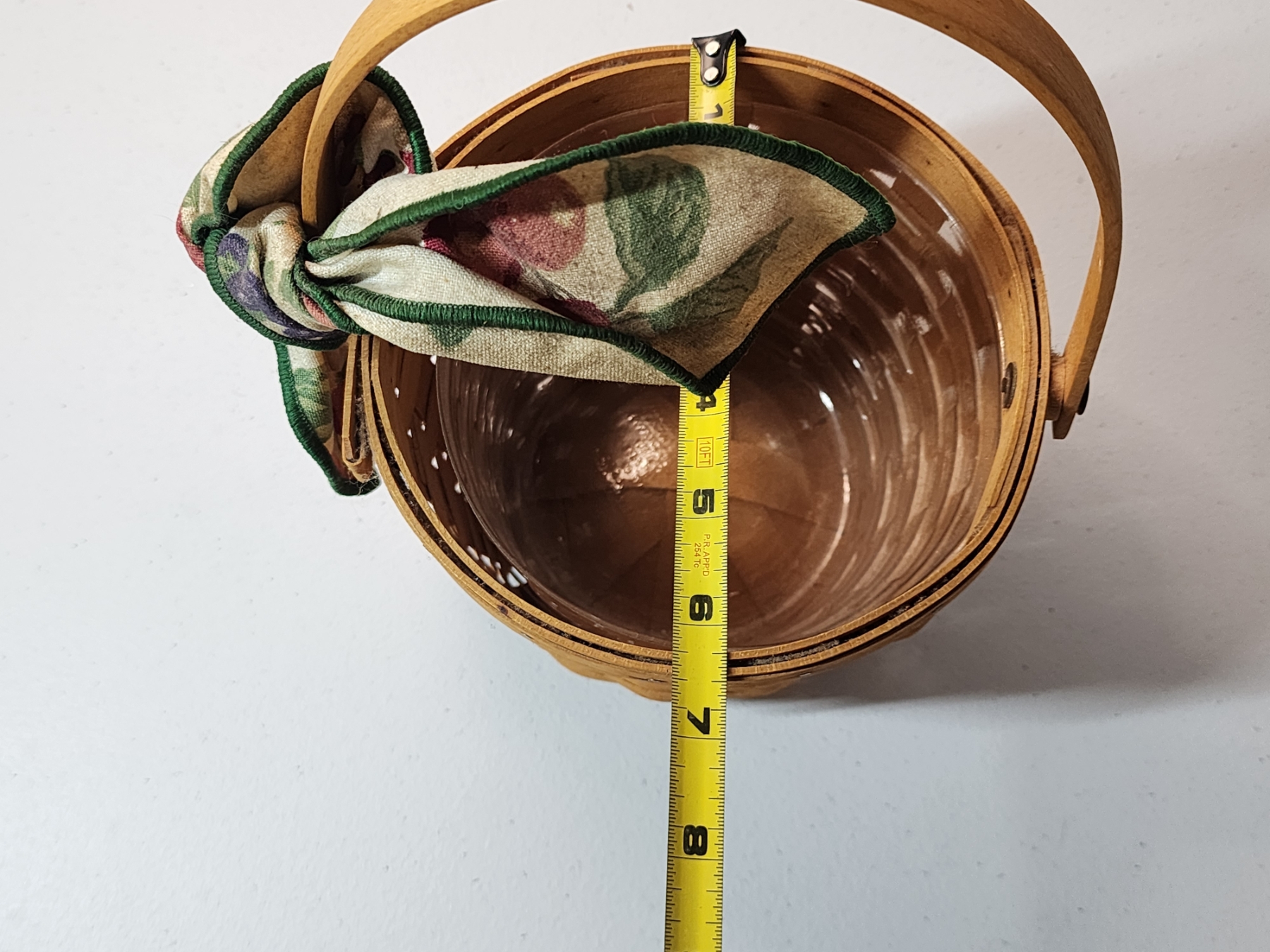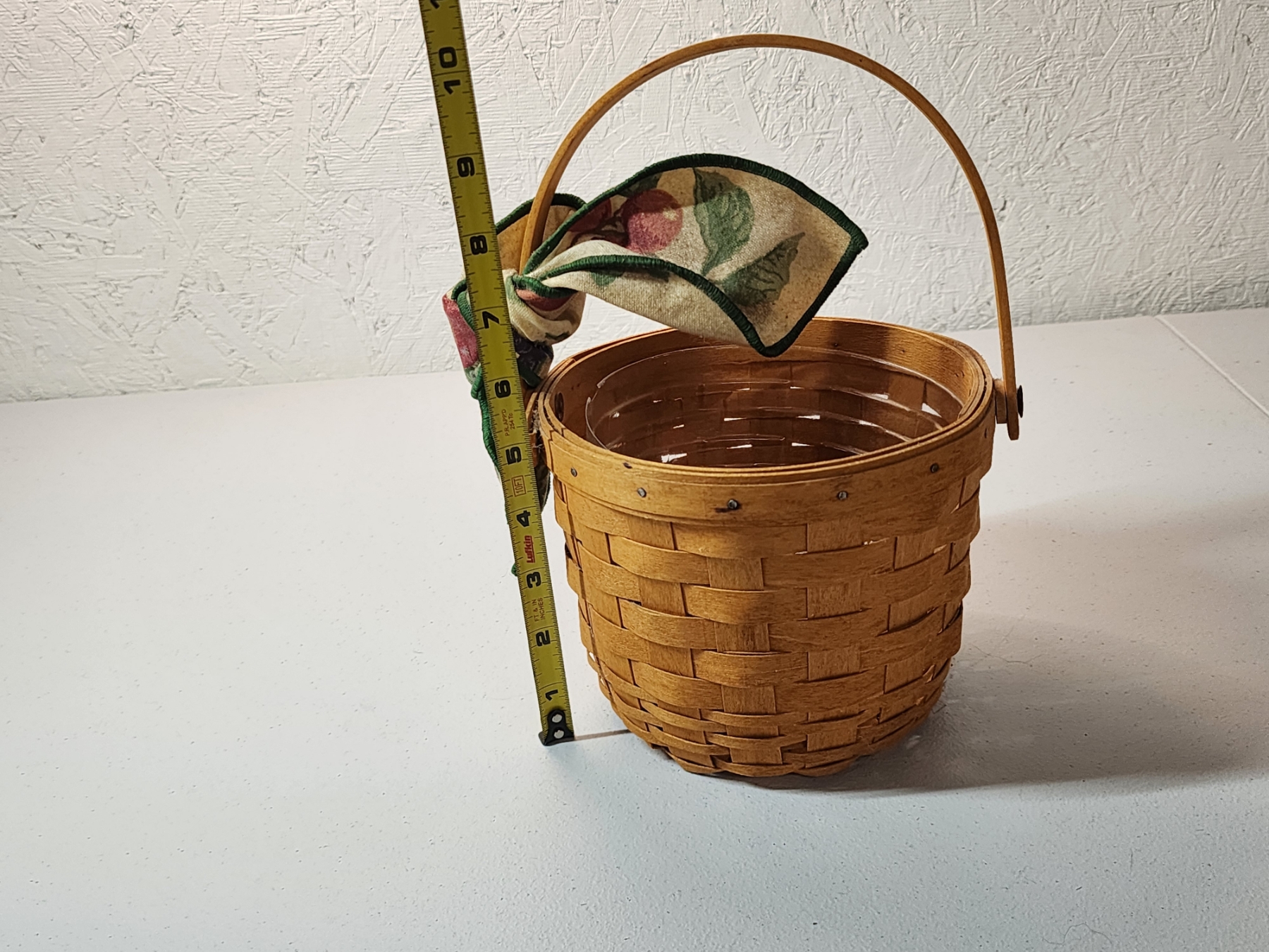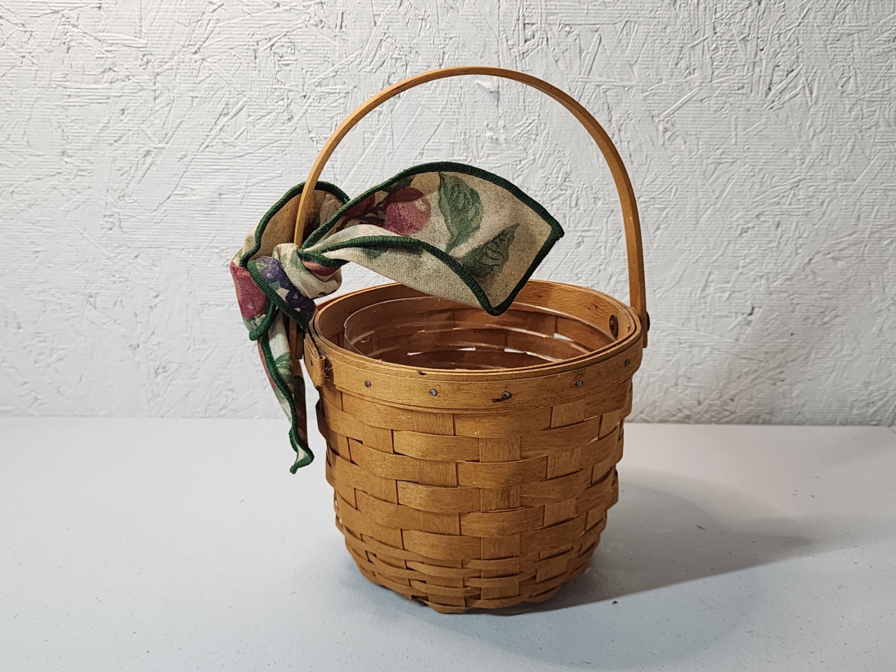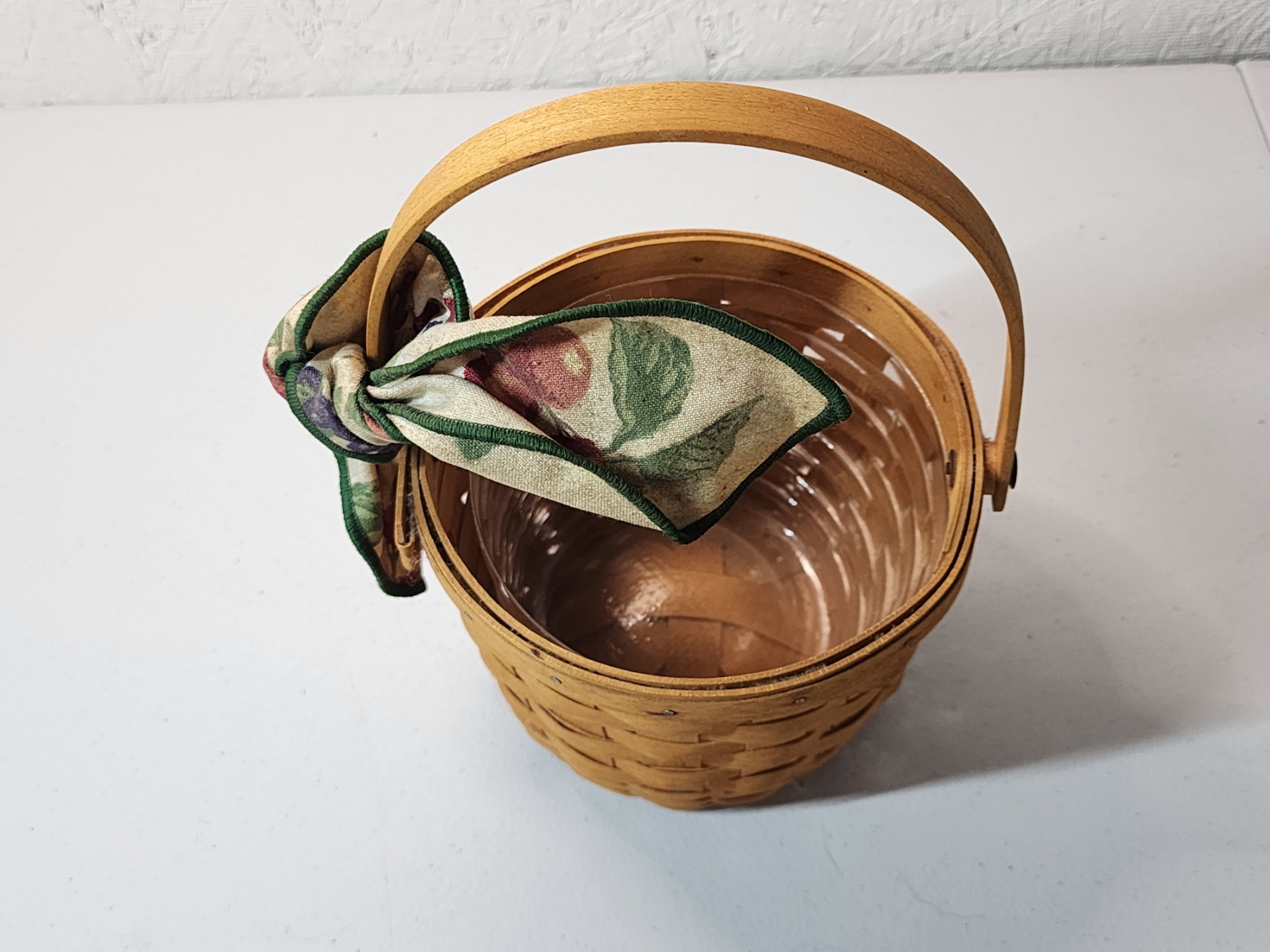 Longaberger Small Fruit Basket w/ Plastic Liner and Fabric Bow