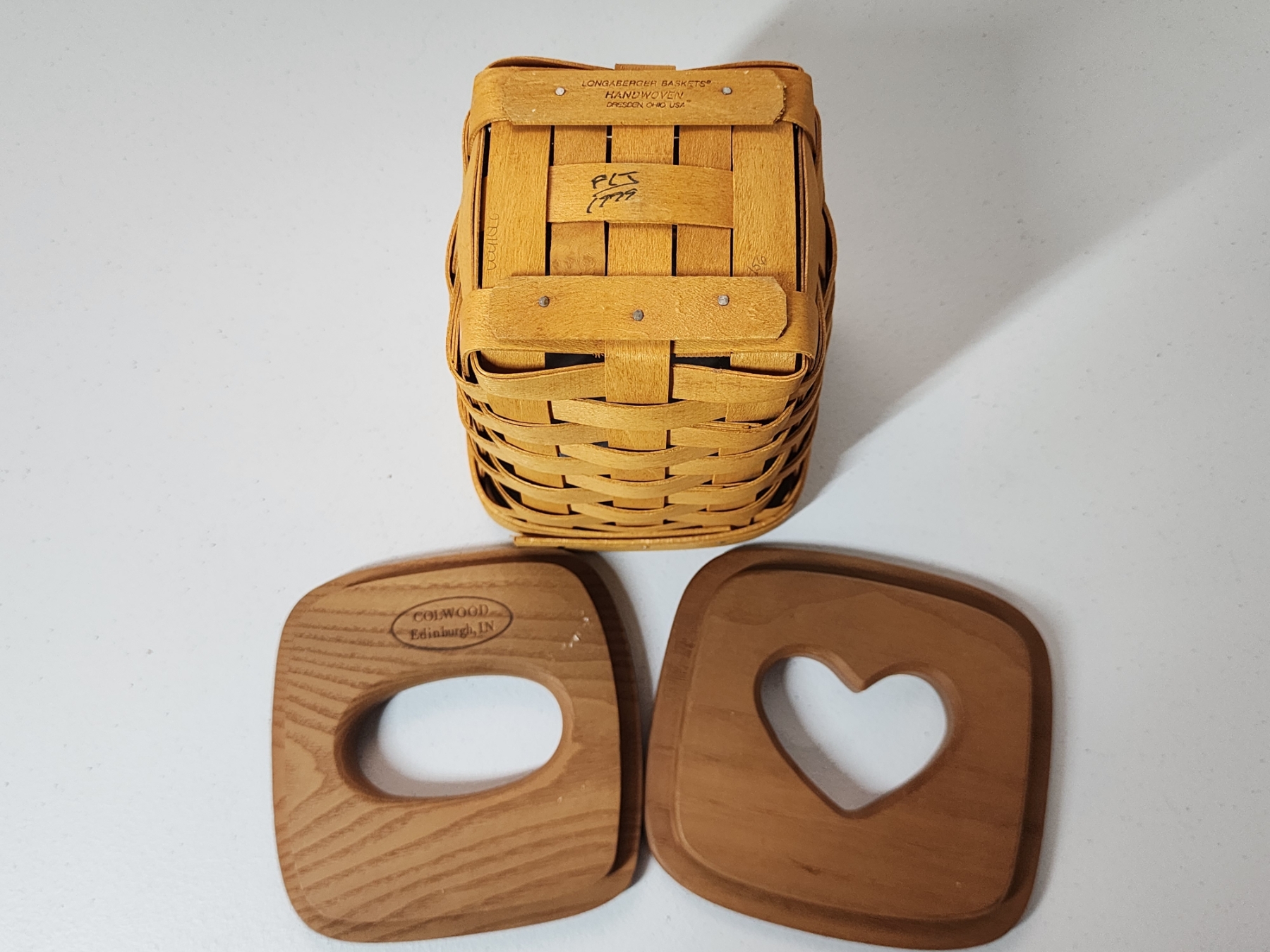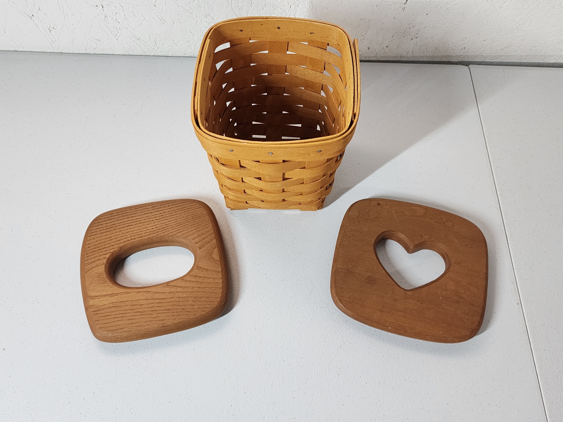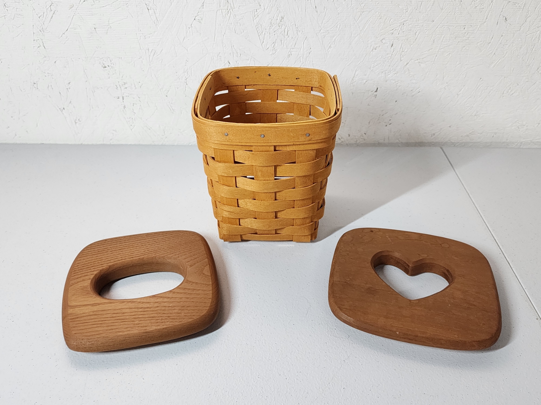 Longaberger Tall Tissue Basket with 2 Wooden Lids - Excellent Condition!