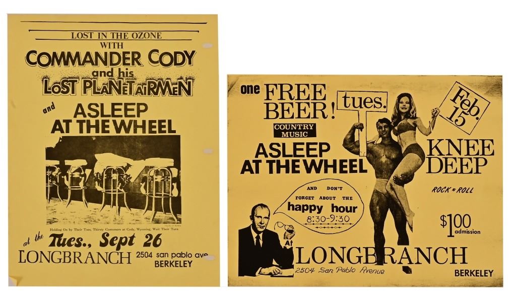 Live at Longbranch in Berkeley, Ca. Tue. Feb. 15 Asleep At The Wheel. Also at the Longbranch, Tue. Sept. 26, Lost In The Ozone with Commander Cody and his Lost Planet Airmen and Asleep At The Wheel. Both 8 1/2" X 11" From Ray Benson's personal collection.