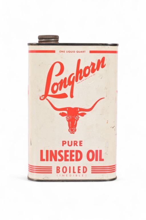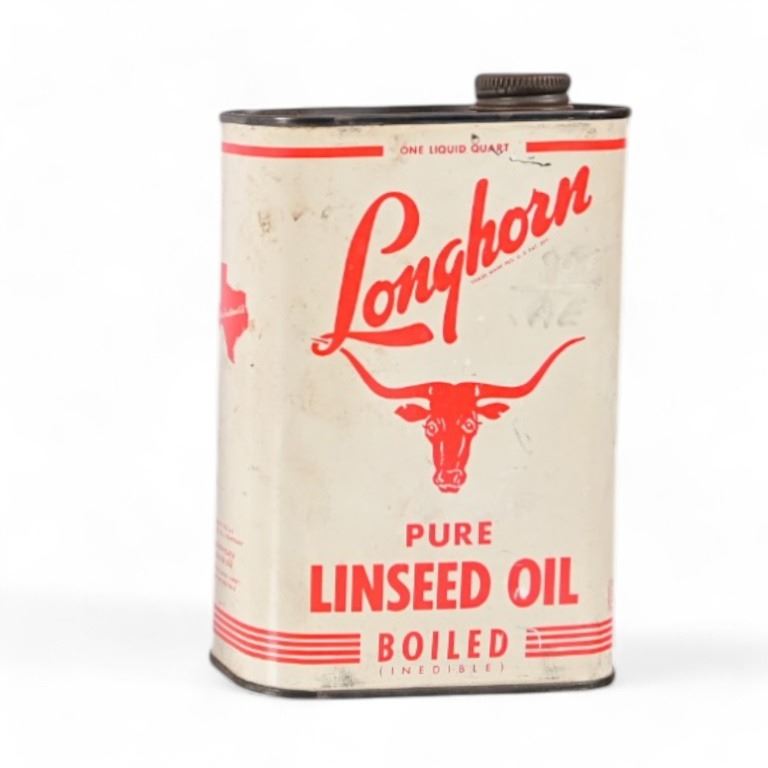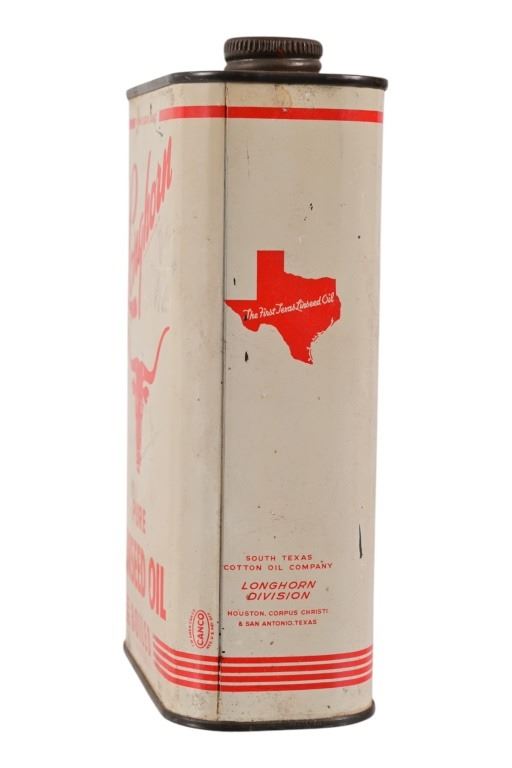 Vintage Longhorn Linseed Oil Can. South Texas Cotton Oil Company