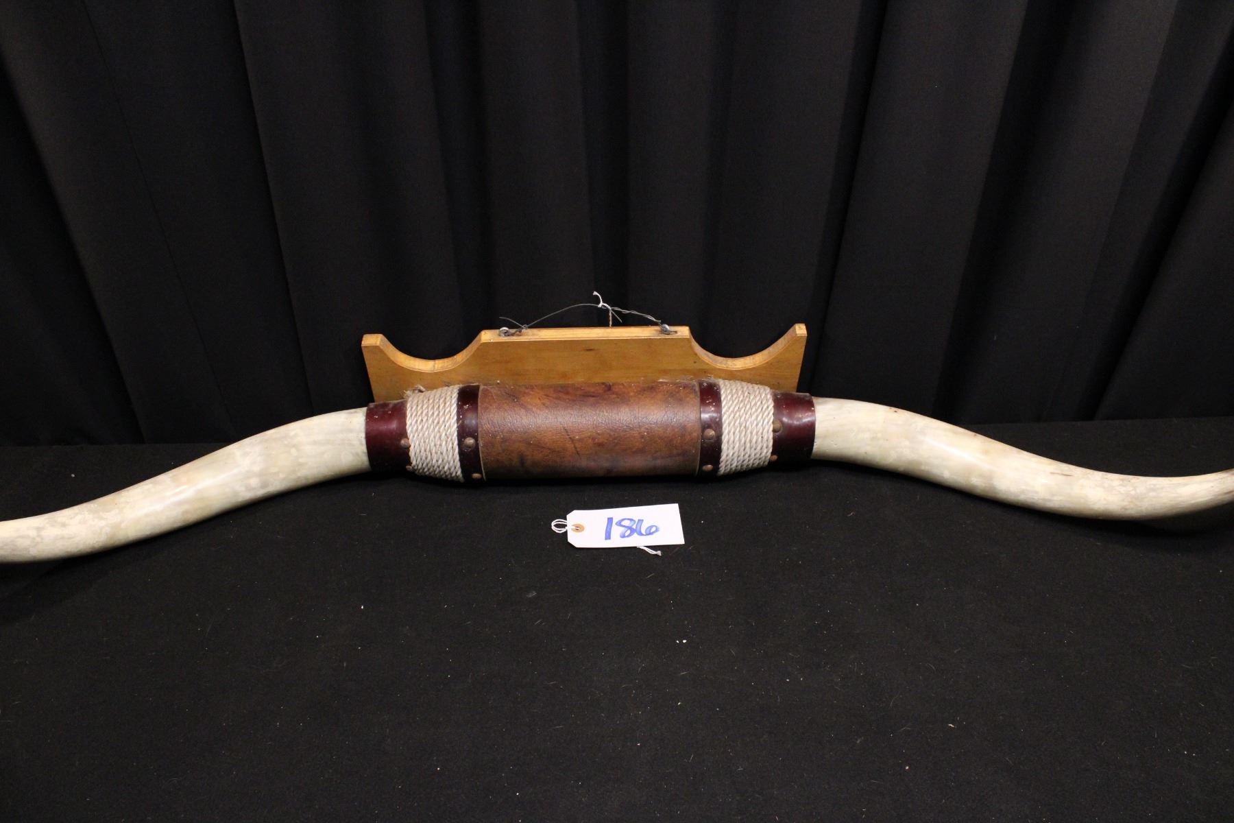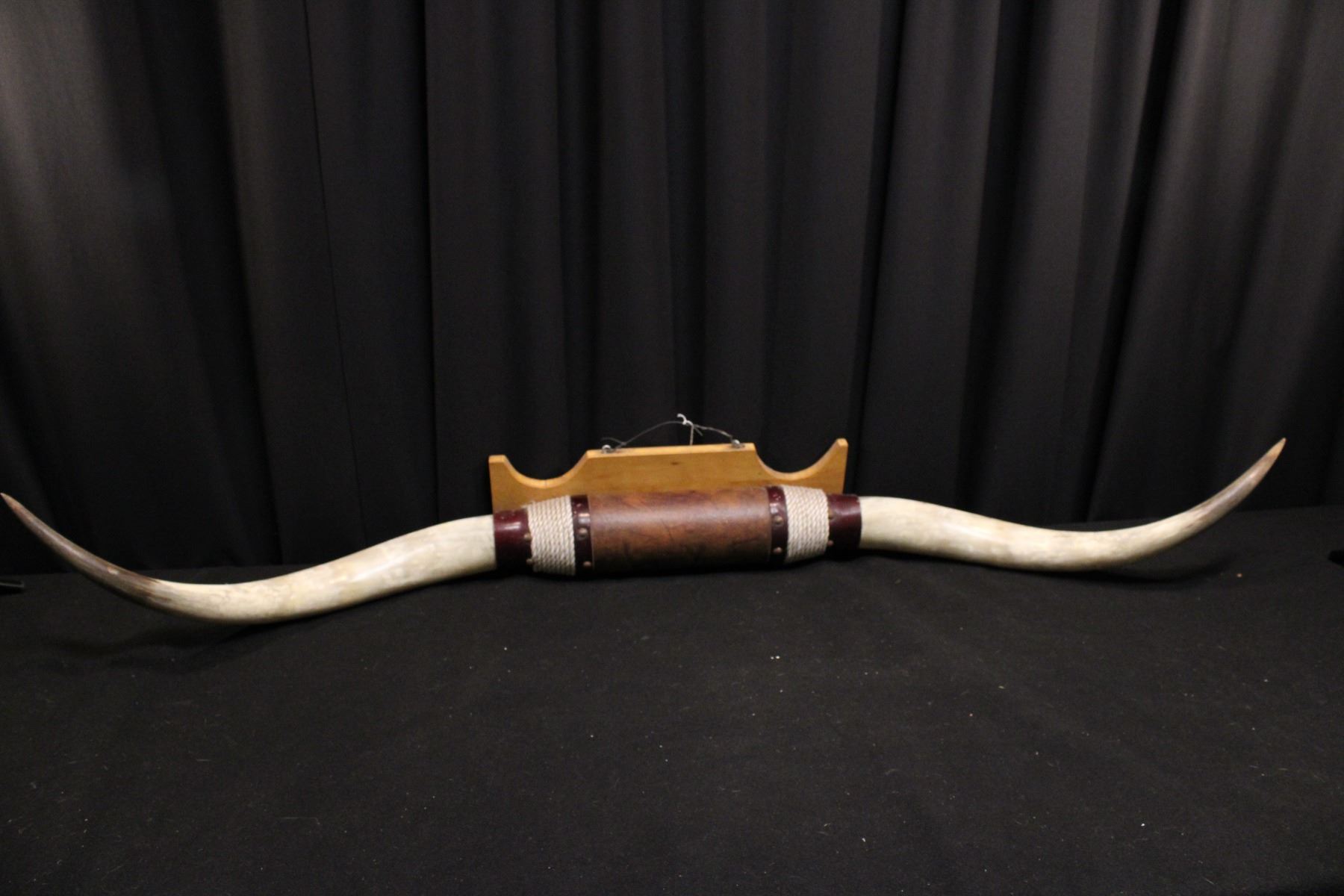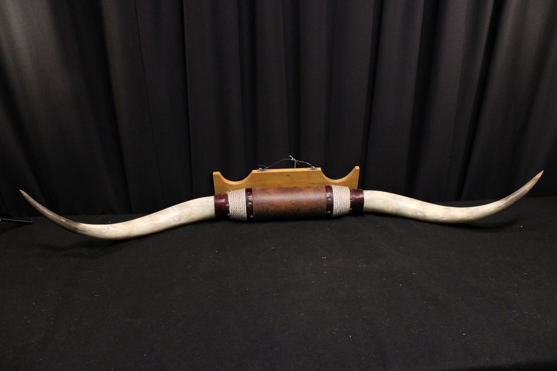 Longhorn mount w/ brown leather wrap. 61" tip to tip