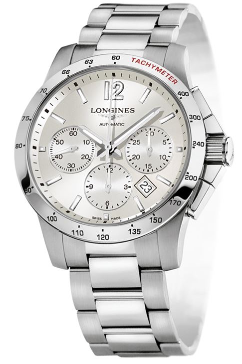 Model: L2.743.4.76.6 - CASE = [Material:Brushed and Polished Stainless Steel], [Case Diameter:41], [Case Thickness:14mm], [Bezel:Fixed], [Case Back:See-thru Sapphire crystal], [Water Resistant:50 Meters - 150 Feet], [Crystal:Scratch Resistant Sapphire], DIAL = [Color:Silver Chronograph with Index Hour Markers], MOVEMENT = [Type:Automatic Self Winding], BAND = [Clasp:Push Button Foldover Clasp], [Type:Brushed and Polished Stainless Steel], (Usually ships in 1 to 2 weeks.)