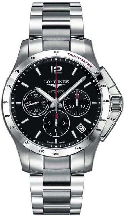 Model: L3.697.4.56.6 - CASE = [Material:Stainless Steel], [Case Diameter:44.5], [Case Thickness:14.7mm], [Bezel:Fixed], [Case Back:Solid], [Water Resistant:50 Meters - 150 Feet], [Crystal:Scratch Resistant Sapphire], DIAL = [Color:Black], MOVEMENT = [Type:Automatic Chronograph], [Crown:Screw Down], BAND = [Clasp:Pushbutton Folding], [Type:Stainless Steel Brushed and Polished], (Usually ships in 1 to 2 weeks.)