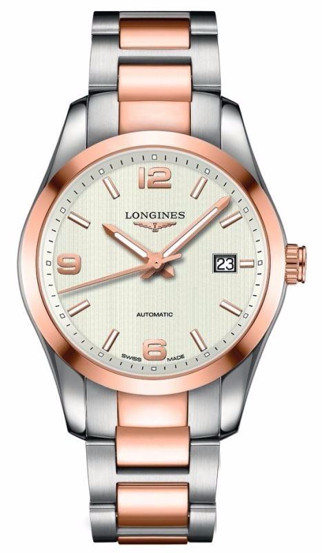 Model: L2.785.5.76.7 - CASE = [Material:18kt Rose Gold with Brushed and Polished Stainless Steel], [Case Diameter:40], [Bezel:18kt Rose Gold Fixed], [Case Back:See-Thru Sapphire], [Water Resistant:50 Meters - 165 Feet], [Crystal:Scratch Resistant Sapphire],; DIAL = [Color:Silver],; MOVEMENT = [Type:Automatic Self Winding Calibre L619],; BAND = [Clasp:Push Button Folding Clasp with Triple Safety], [Type:18kt Rose Gold with Brushed and Polished Stainless Steel], (Usually ships in 1 to 2 weeks.)