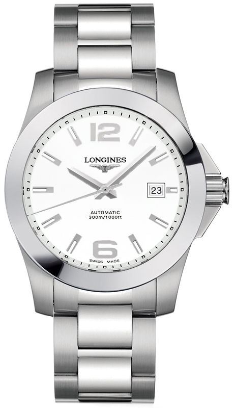 Model: L3.676.4.16.6 - CASE = [Material:Brushed and Polished Stainless Steel], [Case Diameter:39], [Case Thickness:11.5mm], [Case Back:Solid], [Water Resistant:300 Meters - 1000 Feet], [Crystal:Scratch Resistant Sapphire], DIAL = [Color:White with Luminescent Hands and Index Markers, Date at 3], MOVEMENT = [Type:Automatic Self Winding], [Crown:Screw Down], BAND = [Clasp:Push Button Foldover Clasp], [Type:Brushed and Polished Stainless Steel], (In Stock - Ready to ship.)