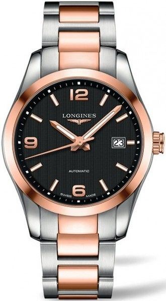 Model: L2.785.5.56.7 - CASE = [Material:18kt Rose Gold with Brushed and Polished Stainless Steel], [Case Diameter:40], [Bezel:18kt Rose Gold Fixed], [Case Back:See-Thru Sapphire], [Water Resistant:50 Meters - 165 Feet], [Crystal:Scratch Resistant Sapphire], DIAL = [Color:Black], MOVEMENT = [Type:Automatic Self Winding Calibre L619], BAND = [Clasp:Push Button Folding Clasp with Triple Safety], [Type:18kt Rose Gold with Brushed and Polished Stainless Steel], (Usually ships in 1 to 2 weeks.)