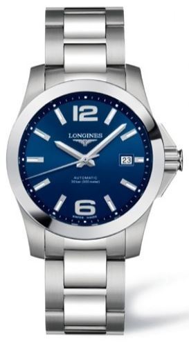 Model: L3.676.4.99.6 - CASE = [Material:Brushed and Polished Stainless Steel], [Case Diameter:39], [Case Thickness:11.5mm], [Case Back:Solid], [Water Resistant:300 Meters - 1000 Feet], [Crystal:Scratch Resistant Sapphire], DIAL = [Color:Blue with Luminescent Hands and Index Markers, Date at 3], MOVEMENT = [Type:Automatic Self Winding], [Crown:Screw Down], BAND = [Clasp:Push Button Foldover Clasp], [Type:Brushed and Polished Stainless Steel], (Usually ships in 1 to 2 weeks.)