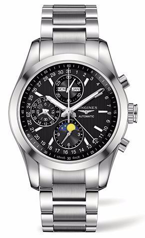 Model: L2.798.4.52.6 - CASE = [Material:Stainless Steel], [Case Diameter:42], [Bezel:Fixed], [Case Back:See-Thru Sapphire], [Water Resistant:50 Meters - 165 Feet], [Crystal:Scratch Resistant Sapphire],; DIAL = [Color:Black],; MOVEMENT = [Type:Automatic Self Winding Chronograph Moon Phase], [Crown:Screw Down],; BAND = [Clasp:Triple Safety Folding Clasp With Push-peice Opening Mechanism], [Type:Stainless Steel Brushed And Polished], (Usually ships in 1 to 2 business days.)