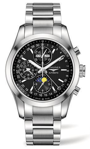 Model: L2.798.4.52.6 - CASE = [Material:Stainless Steel], [Case Diameter:42], [Bezel:Fixed], [Case Back:See-Thru Sapphire], [Water Resistant:50 Meters - 165 Feet], [Crystal:Scratch Resistant Sapphire], DIAL = [Color:Black], MOVEMENT = [Type:Automatic Self Winding Chronograph Moon Phase], [Crown:Screw Down], BAND = [Clasp:Triple Safety Folding Clasp With Push-peice Opening Mechanism], [Type:Stainless Steel Brushed And Polished], (Usually ships in 2 to 4 weeks.)