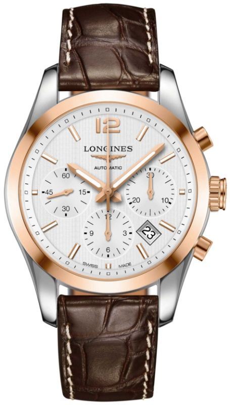 Model: L2.786.5.76.3 - CASE = [Material:Stainless Steel and Rose Gold], [Case Diameter:41], [Case Thickness:14mm], [Bezel:Fixed], [Case Back:Skeleton], [Water Resistant:50 Meters - 150 Feet], [Crystal:Scratch Resistant Sapphire], DIAL = [Color:Silver], MOVEMENT = [Type:Automatic], [Crown:Push In], BAND = [Clasp:Deployment], [Type:Brown Alligator Leather], (Usually ships in 1 to 2 weeks.)