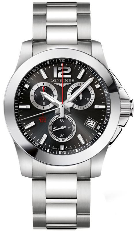 Model: L3.700.4.56.6 - CASE = [Material:Brushed and Polished Stainless Steel], [Case Diameter:41], [Case Thickness:15.15mm], [Bezel:Fixed], [Case Back:Solid], [Water Resistant:300 Meters - 1000 Feet], [Crystal:Scratch Resistant Sapphire], DIAL = [Color:Black Chronograph], MOVEMENT = [Type:Battery Operated Quartz], [Crown:Screw Down], BAND = [Clasp:Push Button Folding], [Type:Brushed and Polished Stainless Steel], (In Stock - Ready to ship.)
