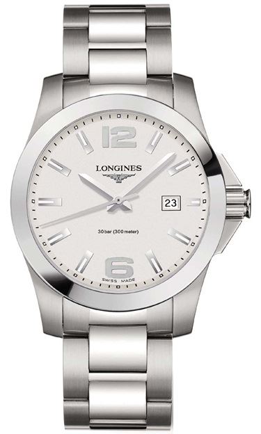 Model: L3.659.4.76.6 - CASE = [Material:Brushed and Polished Stainless Steel], [Case Diameter:41], [Case Back:Solid], [Water Resistant:300 Meters - 1000 Feet], [Crystal:Scratch Resistant Sapphire], DIAL = [Color:Silver], MOVEMENT = [Type:Battery Powered Quartz], [Crown:Screw Down], BAND = [Clasp:Push Button Foldover Clasp], [Type:Brushed and Polished Stainless Steel], (Usually ships in 1 to 2 weeks.)